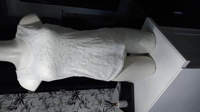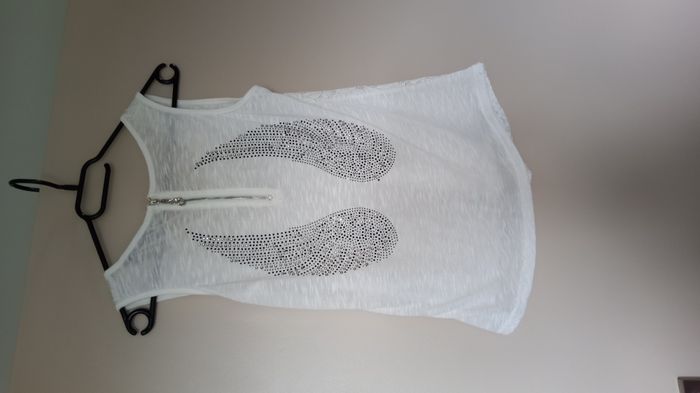 Haut dentelle NEW FASHION Coloris blanc Ailes en strass dans le dos Fermeture éclair dos avec petits cœurs Taille 36 #T36_imoddeco