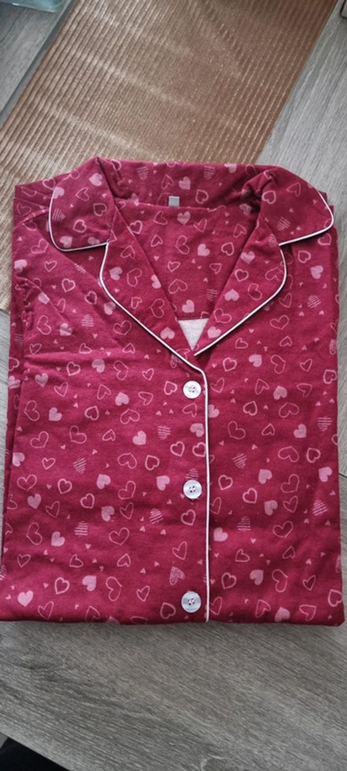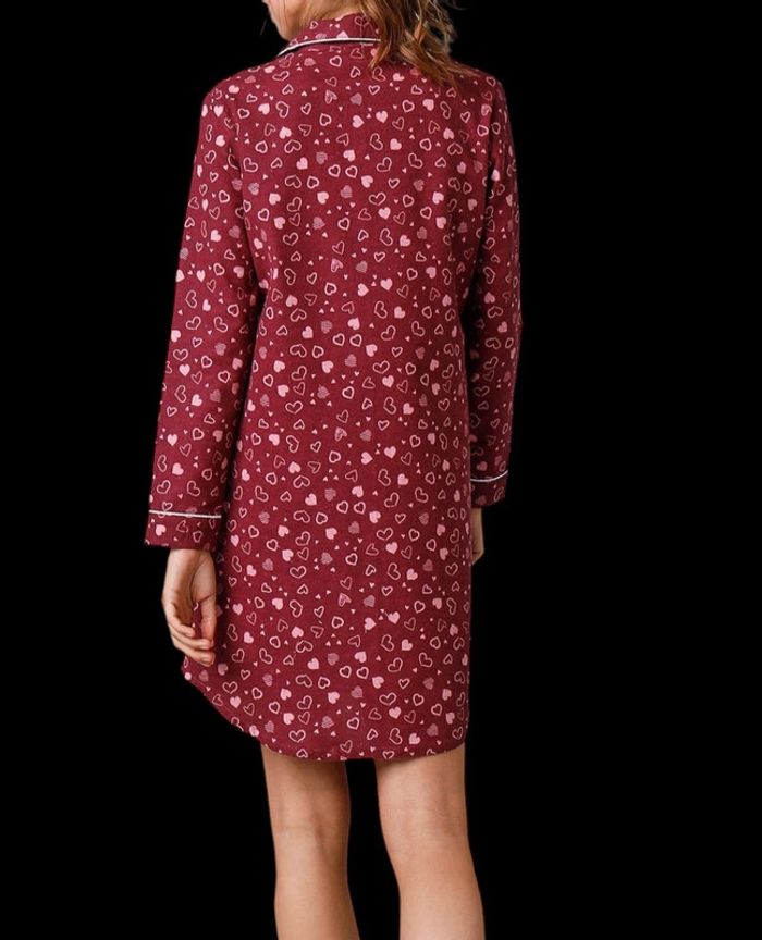 Chemise de nuit en pilou forme liquette imprimé coeur