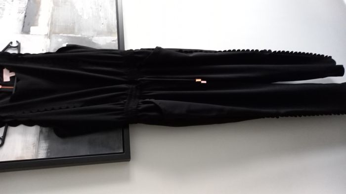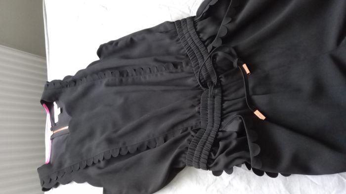 Combi pantalon noir Ted Baker Sans manches 2 poches devant 2 fausses poches arrière Fermeture éclair dorée cuivrée dans le dos Resserrée à la taille par élastique et cordon Haut doublé Tissu avec très bonne tenue 100 % polyester tissu et doublure Longueur haut jusqu’à bas ceinture 48 cm Longueur ceinture bas 94 cm Largeur épaules 28 cm Largeur aisselles 42 cm Largeur taille 33 cm Jamais porté sauf essayage Valeur d’achat 230 € Taille 1 / 36 La remise pour lot ne s'applique pas sur cet article #T36_imoddeco