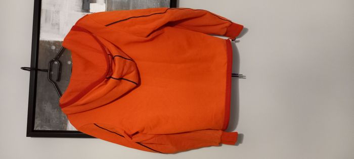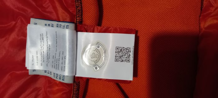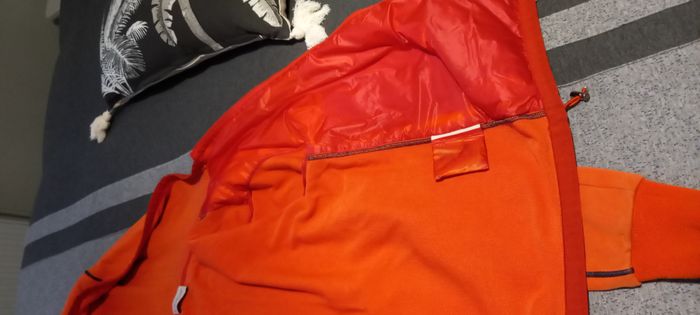 Blouson Moncler à capuche Bi-matière Coloris orange 2 poches zippées Taille S Longueur 61 cm Largeur épaules 40 cm Longueur manches 63 cm Très bon état général mais 2 petits accrocs (réparation faite) et une petite tâche sur la manches droite Remise en mains propres uniquement sur région lyonnaise La remise pour lot ne s'applique pas sur cet article #homme_imoddeco #T36_imoddeco