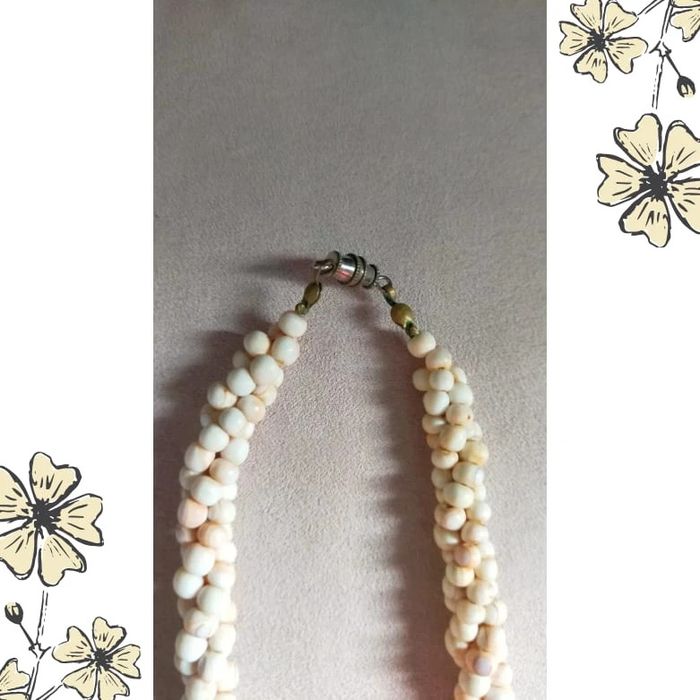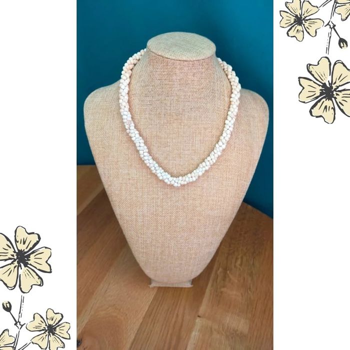 Superbe collier vintage torsadé, composé de petites perles naturelles blanches, probablement en graines ou coquillages. Tons crème légèrement marbrés, avec de belles nuances naturelles. Look bohème, ethnique et 100% unique ✨ 🔸 Longueur standard 🔸 Fermeture par mousqueton 🔸 Léger, agréable à porter 🔸 Issu d’un lot vintage (années 90 ou avant) 🔸 Très bon état général 💡 Idéal pour apporter une touche naturelle et authentique à vos tenues. Se marie aussi bien avec une robe bohème qu’un look estival. 📦 Envoi rapide & soigné. 🎁 Possibilité d’envoi en lot ou petit cadeau surprise pour les commandes multiples ! LBVIN2 #collier #colliervintage #bijouxvintage #bijouxnaturels #bijouxfantaisie #colliercoquillage #perlesnaturelles #vintagestyle #colliertorsadé #ethnichic #bohostyle #années90 #bijouxethnique