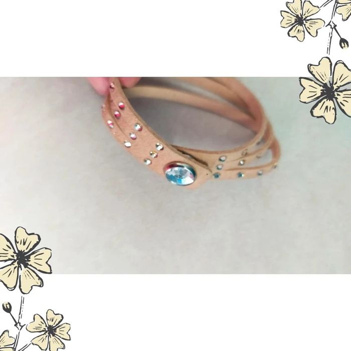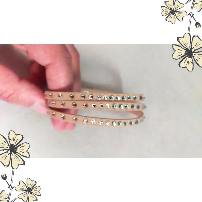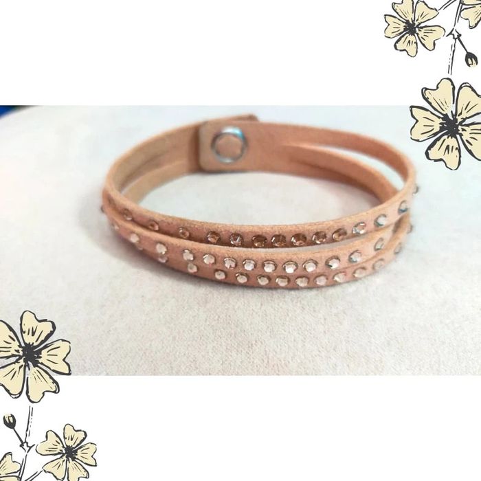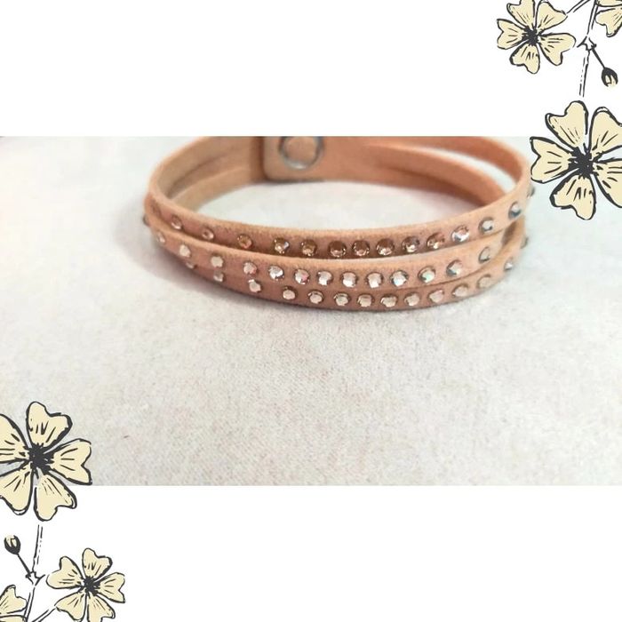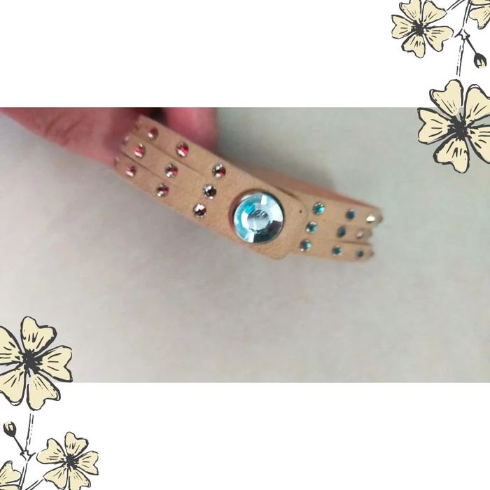 Ajoutez une touche de lumière à votre poignet avec ce joli bracelet vintage à enrouler ! En suédine beige douce et orné de strass étincelants, il s'enroule deux fois autour du poignet et se ferme par pression pour un look à la fois chic et pratique. Parfait pour illuminer vos tenues du quotidien ou sublimer une tenue de soirée. ✨ Détails du produit : Style : Vintage – Fantaisie Couleur : Beige clair Matière : Suédine (aspect daim) Ornements : Deux rangées de strass brillants Fermeture : Bouton pression métallique Tour de poignet : env. 38 cm (double tour) État : Très bon état 💡 Astuce style : Portez-le seul pour un look discret et élégant, ou mixé avec d'autres bracelets pour un effet bohème. LBVIN #bracelet #braceletvintage #braceletfantaisie #braceletbeige #strass #bijouxfemme #braceletbohème #vintagefashion #accessoirefemme #bijouxdoccasion #doubletour #braceletencuir #vintedaddict