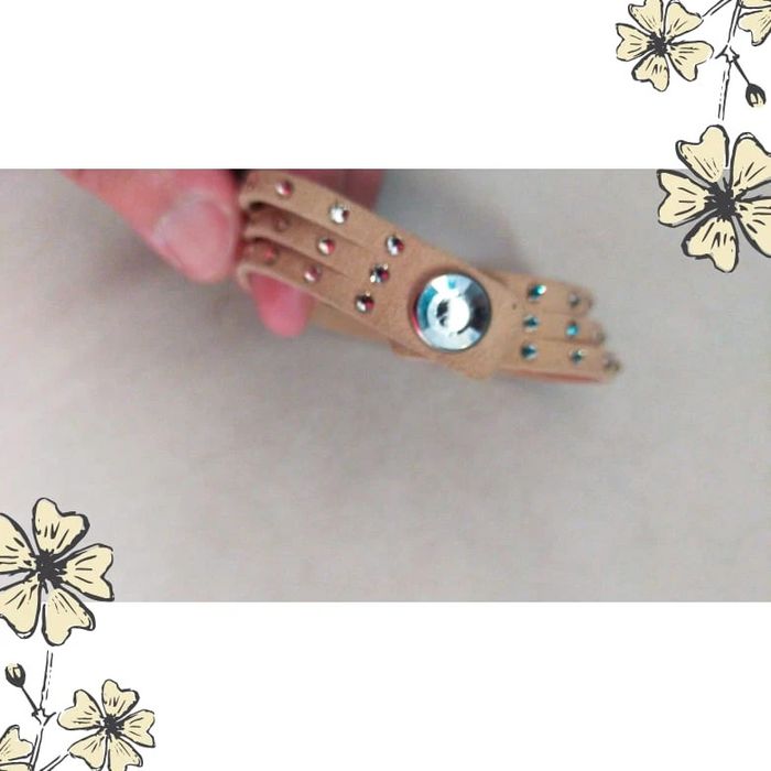 Bracelet vintage beige à strass brillants – Fermeture pression - photo numéro 1