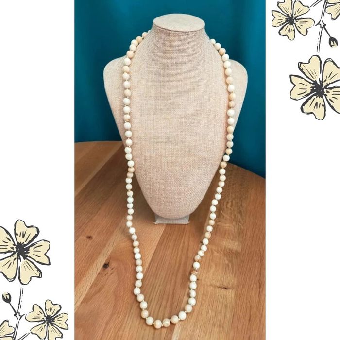 Collier vintage perles crème nacrées – Élégance rétro dorée - photo numéro 1