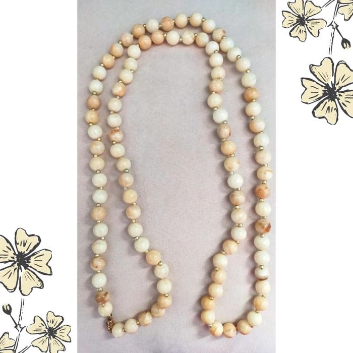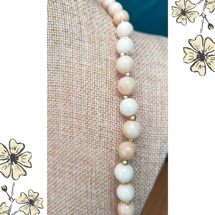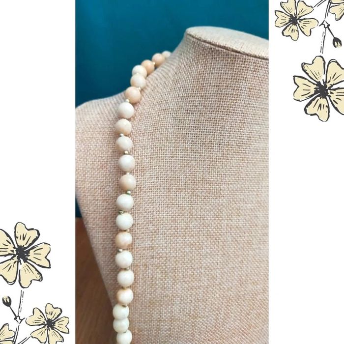 Sublime collier long au charme rétro, composé de perles rondes nacrées dans des tons crème et beige clair, ponctuées de petites perles dorées. Son fermoir à vis doré, typique des bijoux d’époque, lui apporte une touche encore plus vintage. ✨ Un bijou ancien plein de caractère ! Quelques perles présentent une discrète usure de surface ou de la nacre, témoins du temps qui passe… Ce qui lui donne une patine très authentique pour les amatrices de pièces vintage avec du vécu. 📏 Longueur : env. 60 cm 🔗 Fermoir : à vis, doré vintage 🎨 Couleurs : crème, beige, doré 💎 Matière : plastique ou résine imitation perles (non testé) 🎁 Pièce ancienne – vendue telle quelle 🤝 Prix négociable dans la limite du raisonnable #colliervintage #bijouxvintage #perlescrème #bijouxfemme #accessoiresretro #collierrétro #bijouxanciens #collierlong #collierdoré #stylevintage #vintagestyle