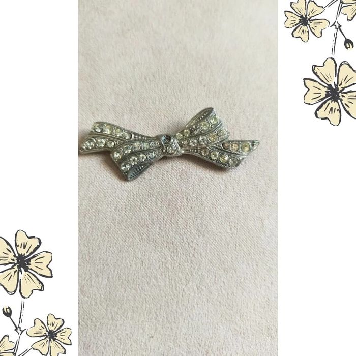 Broche ancienne nœud strassé – glamour vintage - photo numéro 1
