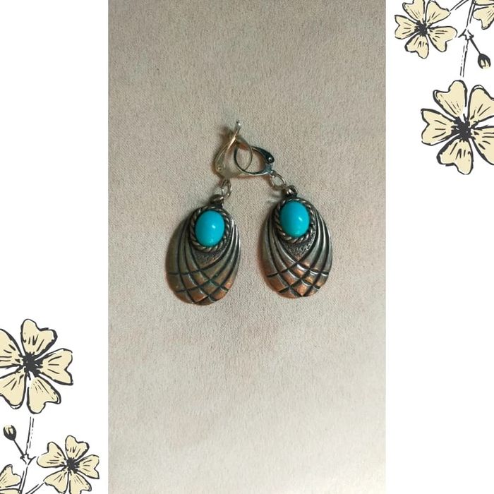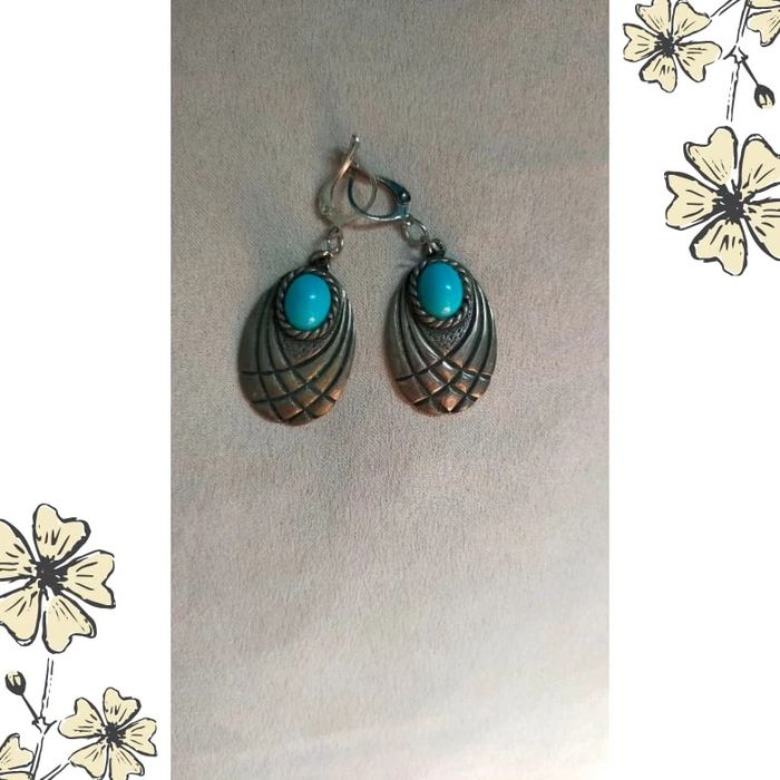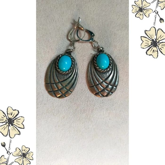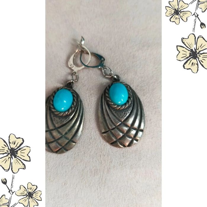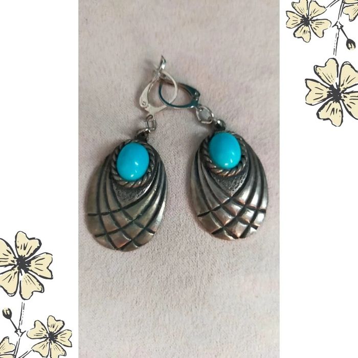 Boucles d’oreilles vintage argentées et turquoises – style ethnique - photo numéro 1