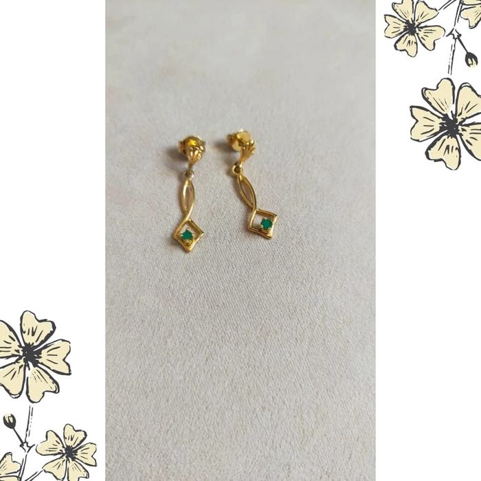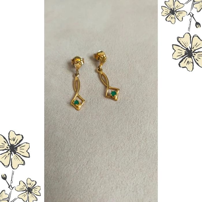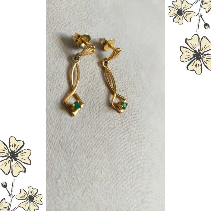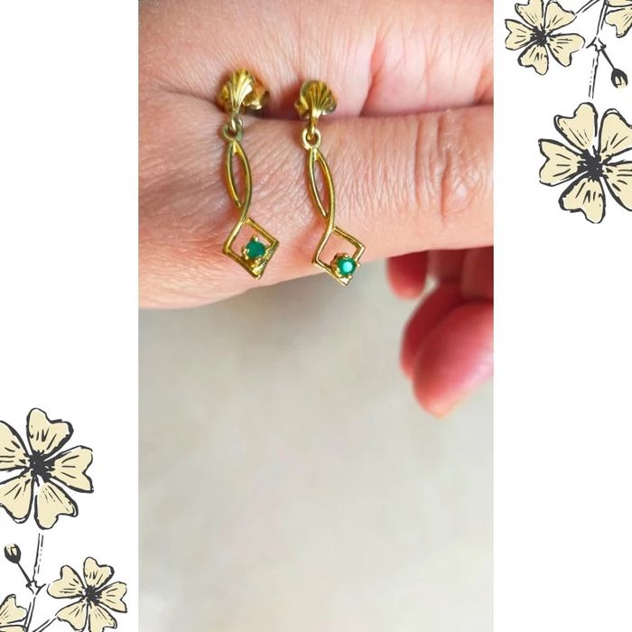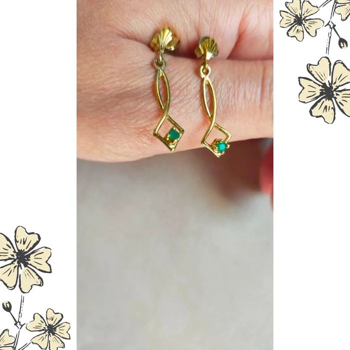 Boucles d’oreilles vintage dorées – strass vert & design géométrique - photo numéro 1