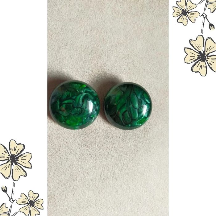 Élégantes et originales, ces boucles d’oreilles à clip arborent un beau motif nacré en nuances de vert émeraude, avec des reflets brillants et un effet texturé en profondeur. Leur forme ronde et bombée rappelle les bijoux des années 80, parfaites pour un look rétro ou une touche sophistiquée. 📎 Fermeture : clips métal argenté 🎨 Couleur : vert émeraude, reflets nacrés 📏 Diamètre : environ 2,8 cm 💎 Matière : plastique ou résine effet nacré 🕰️ État : bon état vintage – de légères traces d’usage à l’arrière (voir photos), invisibles une fois portées. 💡 Idéales pour accessoiriser une tenue chic ou apporter une touche vintage à un look moderne. 📦 Envoi rapide et soigné 💌 Négociable dans la limite du raisonnable LBVIN2 #bouclesdoreillesvintage #clipon #bouclesclip #vertemeraude #bijouxretro #vintage80s #accessoiresfemme #bijouxanciens #vintagestyle #bijouxcolorés