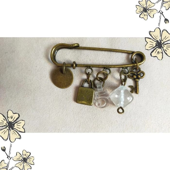 Broche vintage style porte-bonheur – Métal bronze vieilli - photo numéro 6