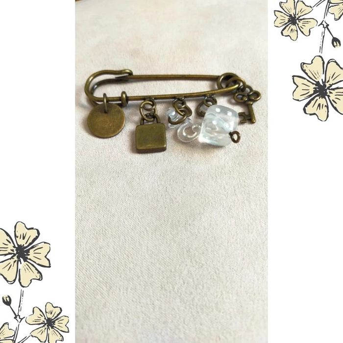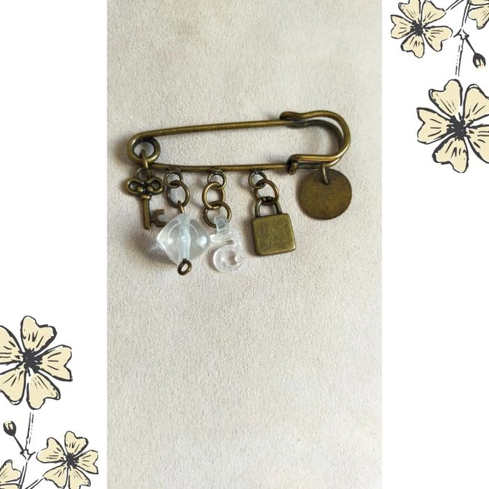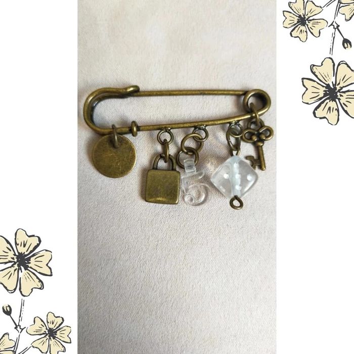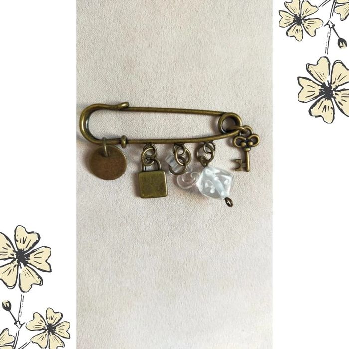 Ajoute une touche de charme rétro à ta tenue avec cette broche unique au style vintage ! Inspirée des porte-bonheurs d’antan, elle combine symboles et matières pour un look original et décalé. 🔸 Détails du bijou : • Broche en métal doré vieilli (aspect bronze antique) • 5 pendentifs suspendus :  – Une petite clé style rétro (métal)  – Un dé transparent (acrylique)  – Un chiffre 5 (plastique transparent)  – Un petit cadenas carré (métal bronze)  – Une médaille ronde lisse (métal bronze) 🔸 Dimensions : • Longueur totale de la broche : env. 5,5 cm • Pendentifs de 1 à 2,5 cm selon les éléments 🔸 État : Très bon état vintage. Patine naturelle du métal volontaire pour un effet ancien. Le mécanisme d’attache fonctionne parfaitement. 🔸 Style & usage : À porter sur une veste, un manteau ou un sac pour un effet stylé et bohème. Parfait pour les amoureux de pièces originales et symboliques. 💡 Idée cadeau : parfaite pour un amateur de vintage, un passionné de porte-bonheurs ou une touche d’excentricité discrète. ✅ Livraison rapide & soignée 🎁 Envoi en lot ou petit bijou surprise offert dès 2 achats ! 📌 #broche #brochevintage #bijouxvintage #porteBonheur #clé #cadeauoriginal #accessoirebohème #bijouUnique