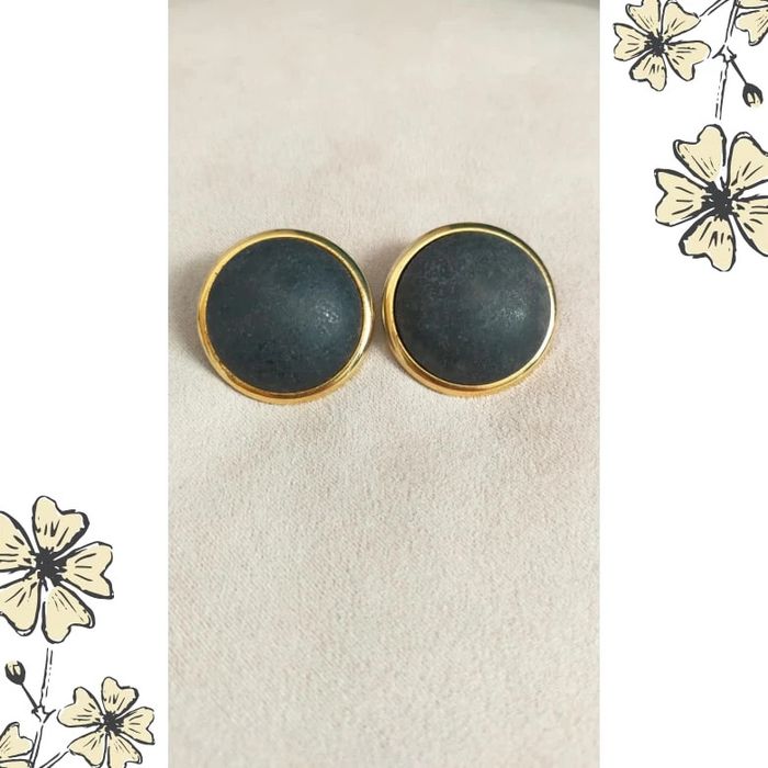 Boucles d'oreilles vintage clip – noir & doré - photo numéro 3