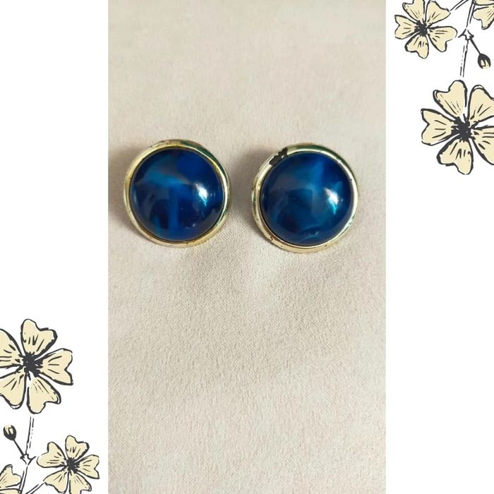 Boucles d’oreilles vintage à clip – Bleu profond & doré - photo numéro 1