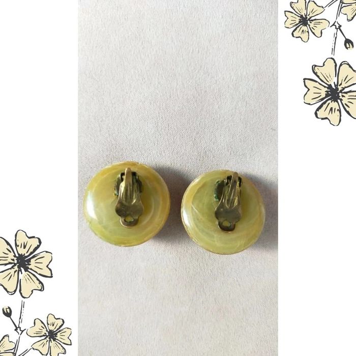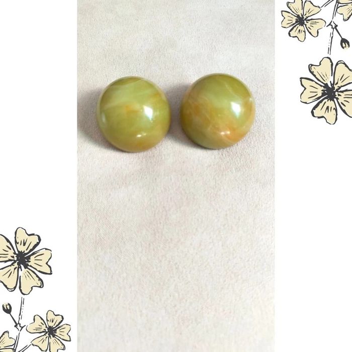 Très jolies boucles d’oreilles vintage à clip, en matière type ciprésine (ou lucite), dans une teinte rare et lumineuse : vert céladon légèrement marbré. Effet brillant, forme bombée, style rétro très affirmé. Fermoirs à clips métalliques en bon état de fonctionnement (légère oxydation au dos, invisible porté). 💚 Idéal pour un look vintage chic, années 50-60. 🔹 Type de fermoir : Clip 🔹 Diamètre : env. 3 cm 🔹 Matière : Résine vintage type lucite / ciprésine 🔹 Couleur : Vert céladon marbré 🔹 Style : Rétro, classique, années 60 📌 État : Bon état vintage. Quelques traces d’usure visibles sur les arêtes (petits éclats et rayures superficielles, voir photos zoomées). Cela n'altère pas la solidité ni le style de la pièce, et reste très discret porté. 💡 Une pièce originale pour les amoureuses du rétro ou les collectionneuses de bijoux anciens ! Idéal pour accessoiriser une tenue minimaliste ou ajouter une touche de caractère à un look bohème. 💌 Je soigne l’envoi & l’emballage. Envoi rapide. 🎁 Possibilité d’envoi en lot ou d’ajouter un petit bijou surprise en cas de plusieurs achats ! LBVIN2 #bouclesdoreilles #vintage #bijouxfantaisie #clip #rétro #années60 #lucite #ciprésine #bijouancien #vertcéladon #fifties #bijouxvintage #brocante