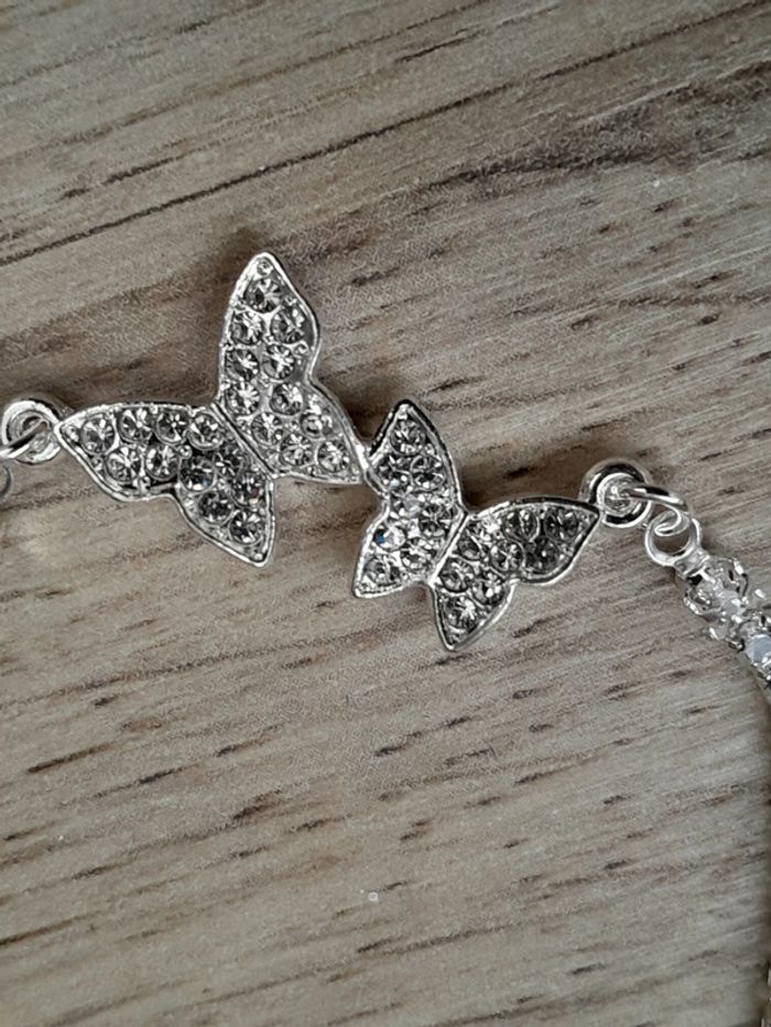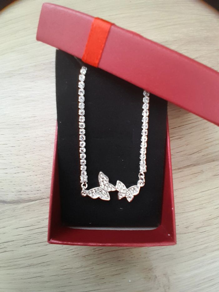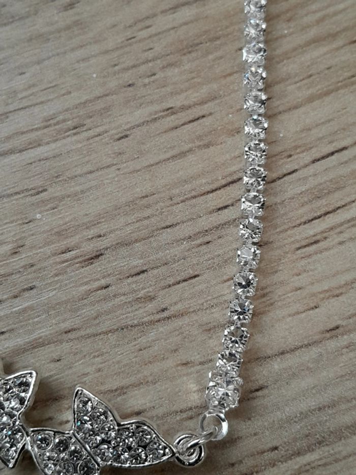 Collier 2 papillons avec strass, couleur argentée