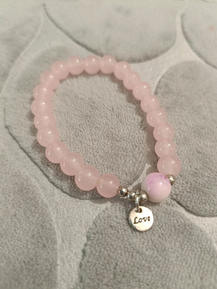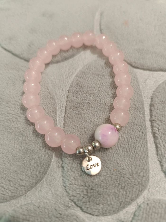 #Bracelet #élastique femme #Pendentif #love , #perles en #verre
