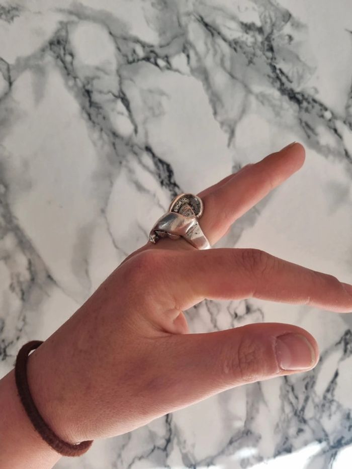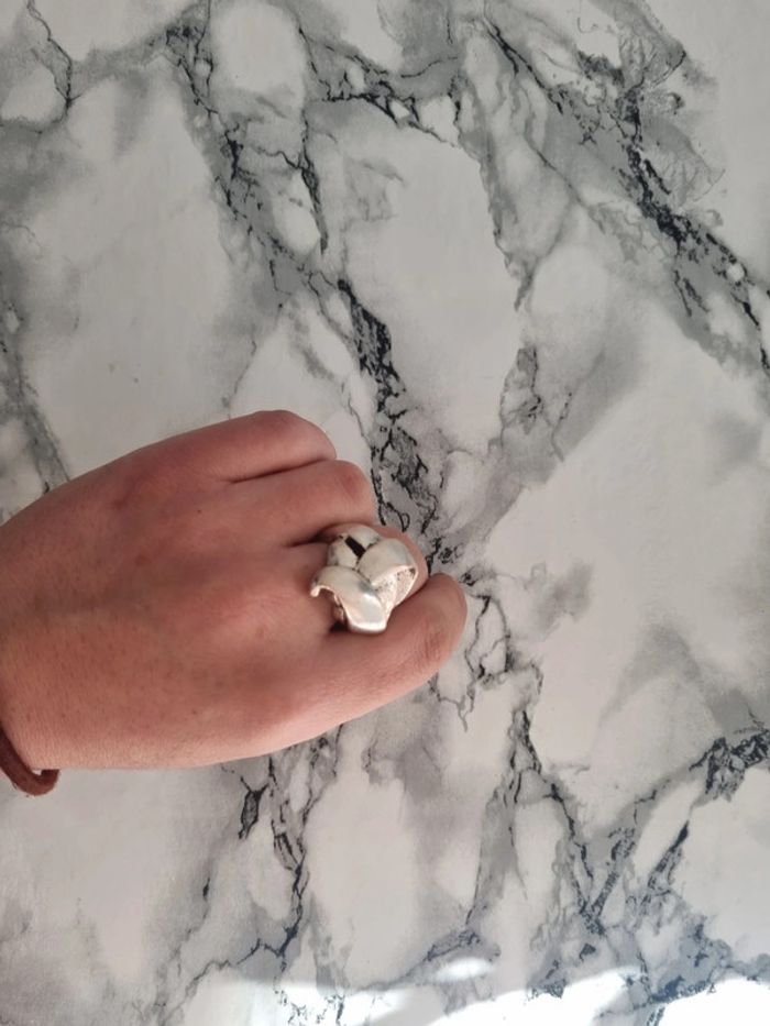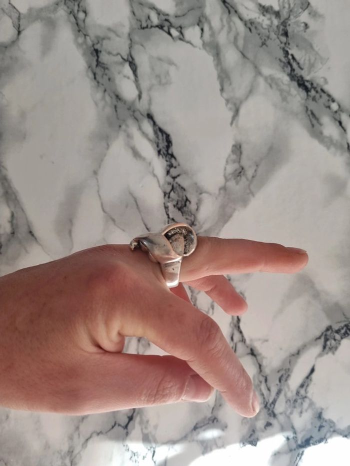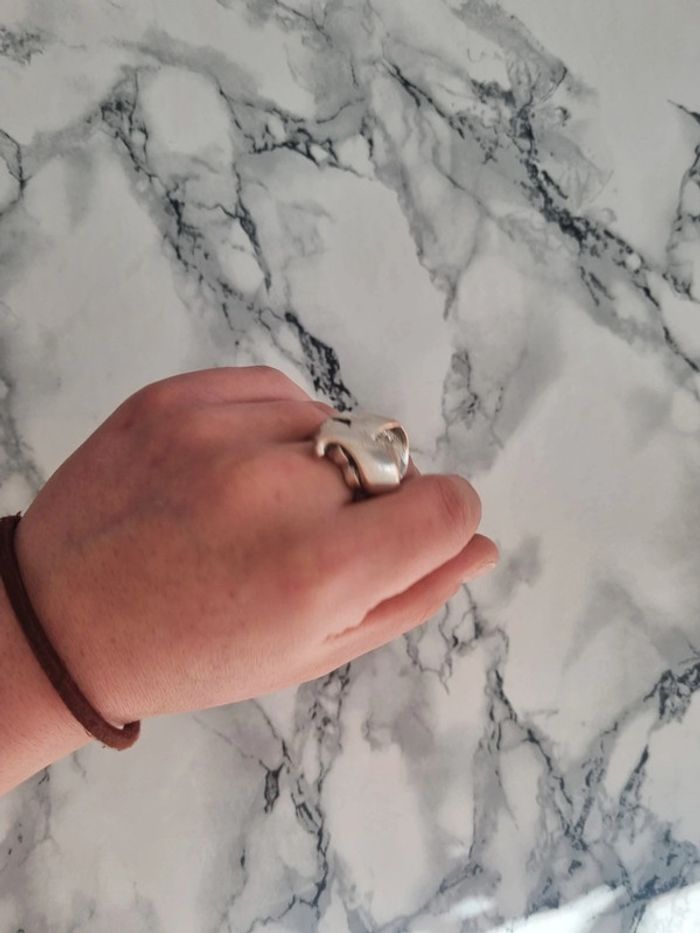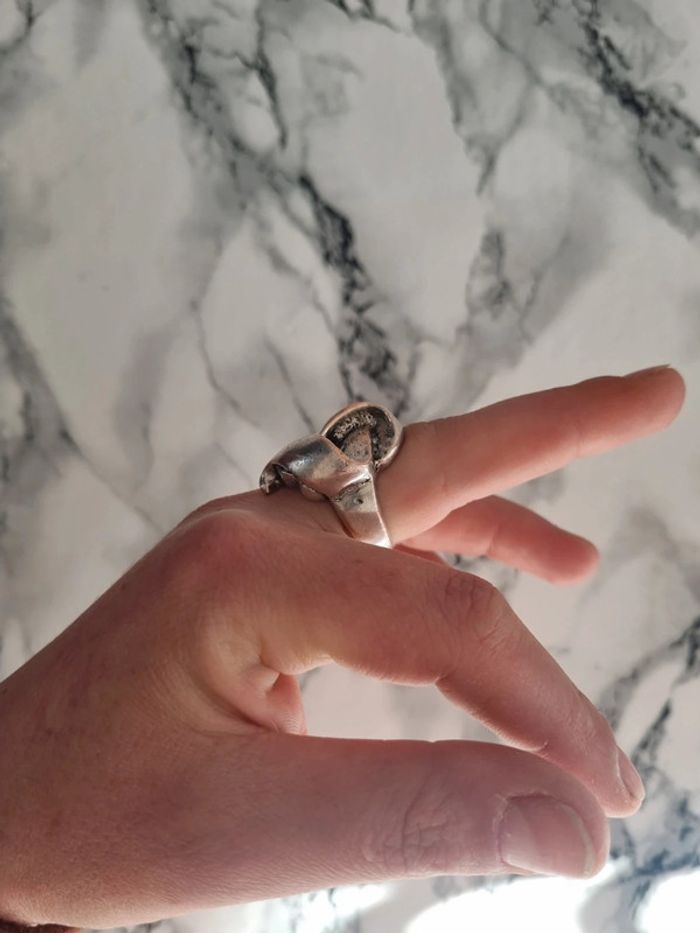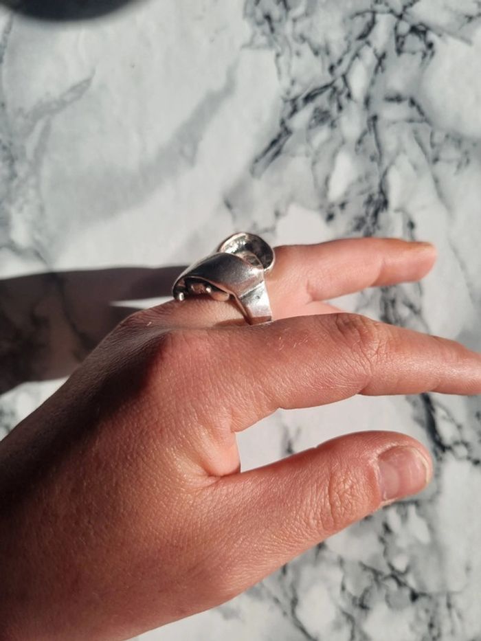 Magnifique bague argenté vintage Elle est en forme de noeuf Année '80 Elle est métal argenté En bon état Dimensions : - Largeur du noeud : 3 cm - Longueur du noeud : 3 cm - Circonférence : 1,9 cm