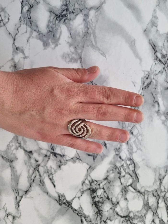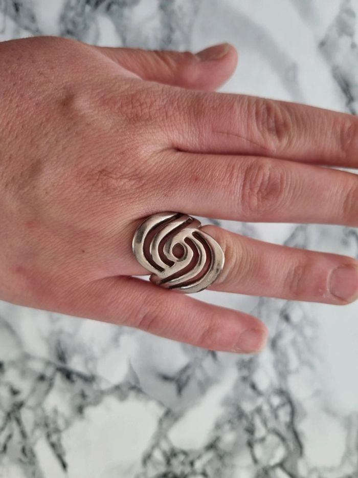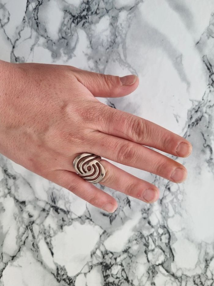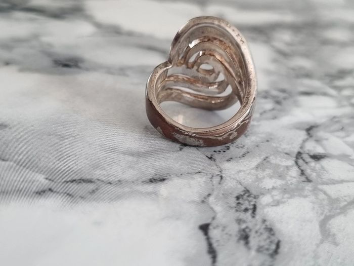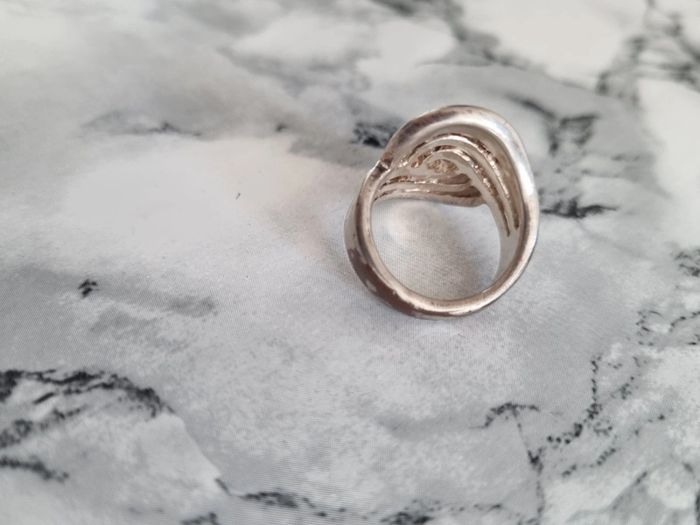 Magnifique bague argenté ovale En bon état En métal Épouse bien le doigt Arrière un peu abîmé sinon le devant nickel Dimensions : - Longueur de l'ornement : 3 cm - Largeur de l'ornement : 4 cm - Circonférence : 1,9 cm