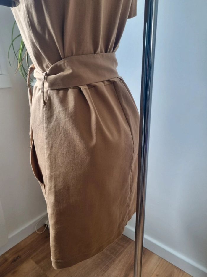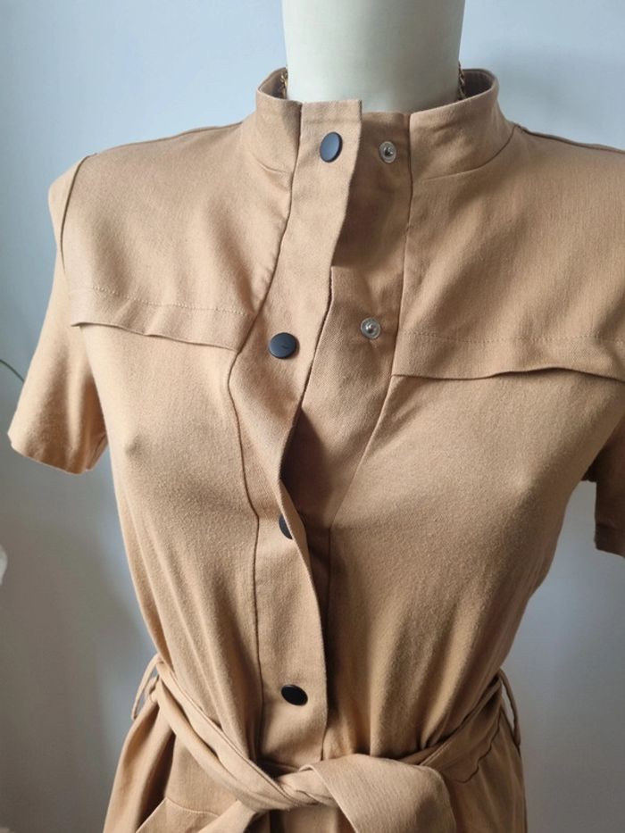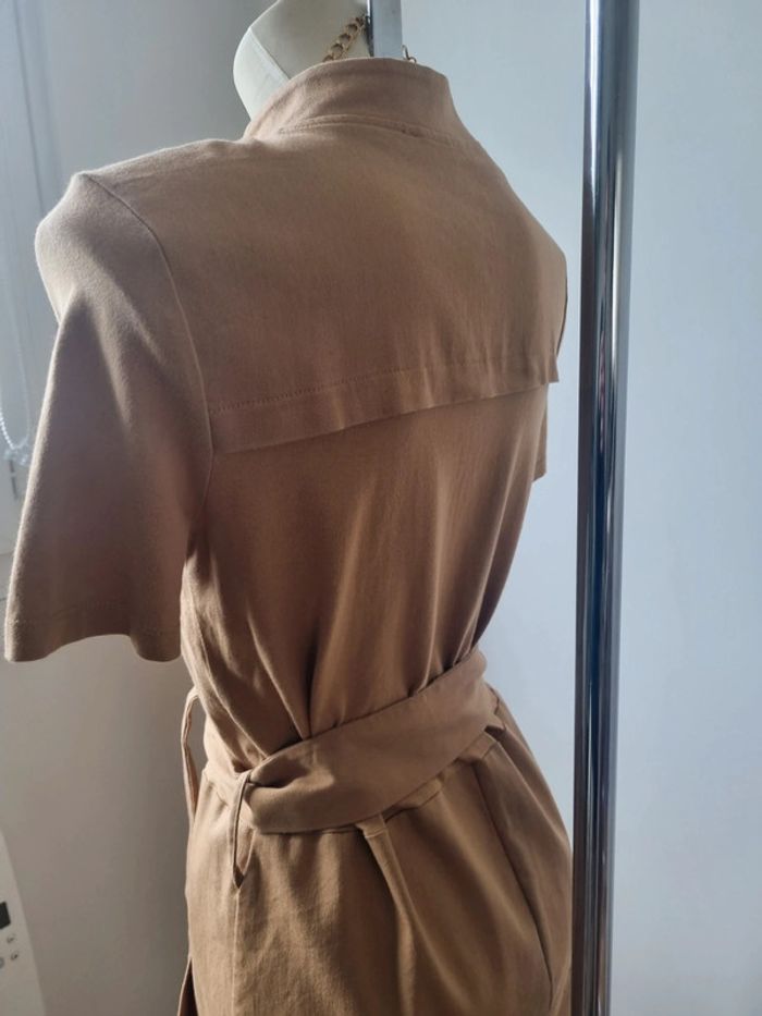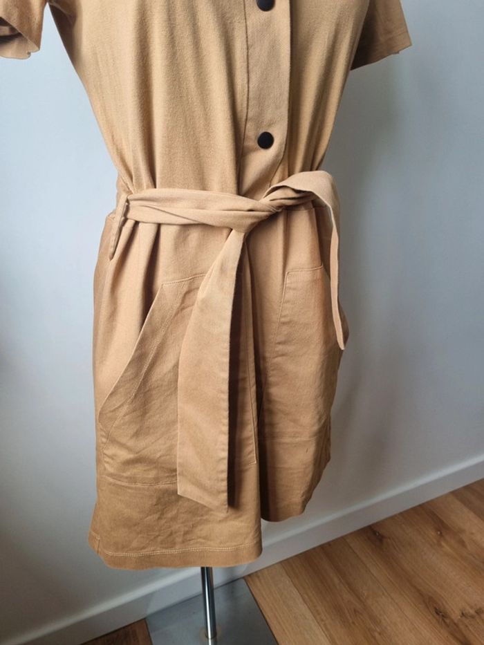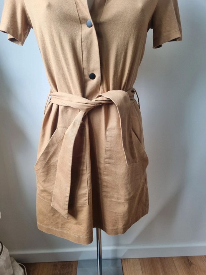 Magnifique robe Zara beige En parfait état Avec sa ceinture Beau boutons noir mat sur le devant Deux poches à l'avant Taille M Dimensions sans la ceinture à plat : - Largeur épaules : 42 cm - Largeur taille : 44 cm - Longueur dos : 95 cm - Largeur aiselles : 46 cm