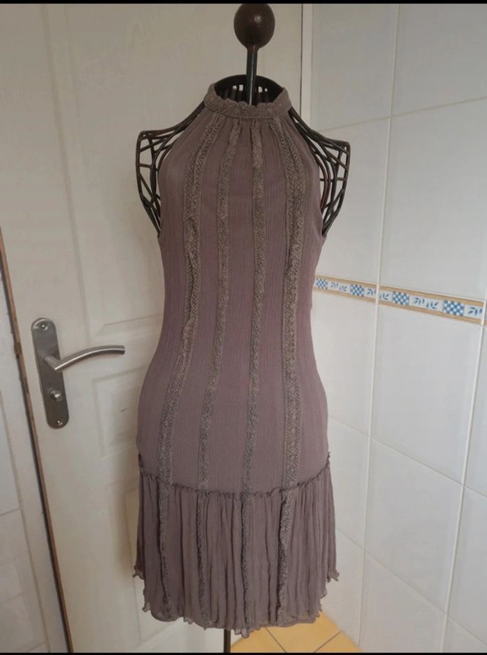 Jolie robe fluide couleur taupe femme 100% soie camaïeu taille M/38