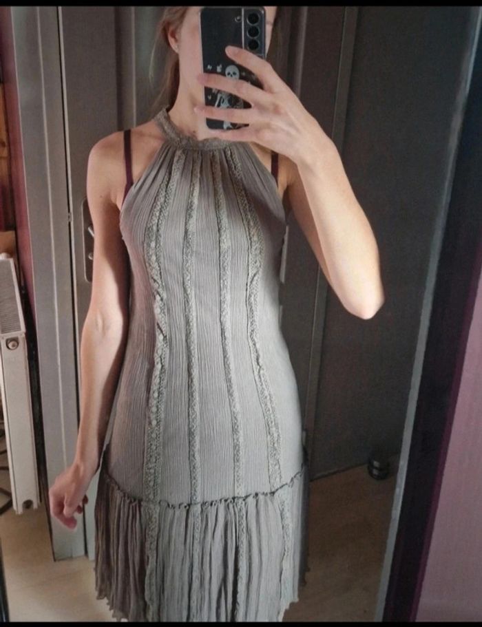 Jolie robe fluide couleur taupe femme 100% soie camaïeu taille M/38 - photo numéro 1