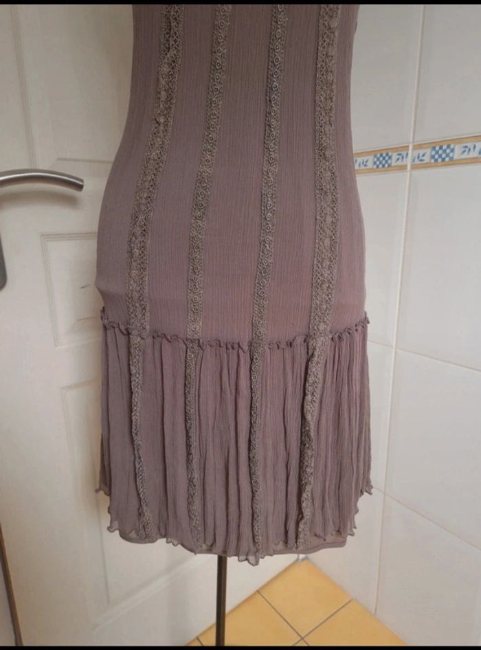 Jolie robe fluide couleur taupe femme 100% soie camaïeu taille M/38 - photo numéro 3