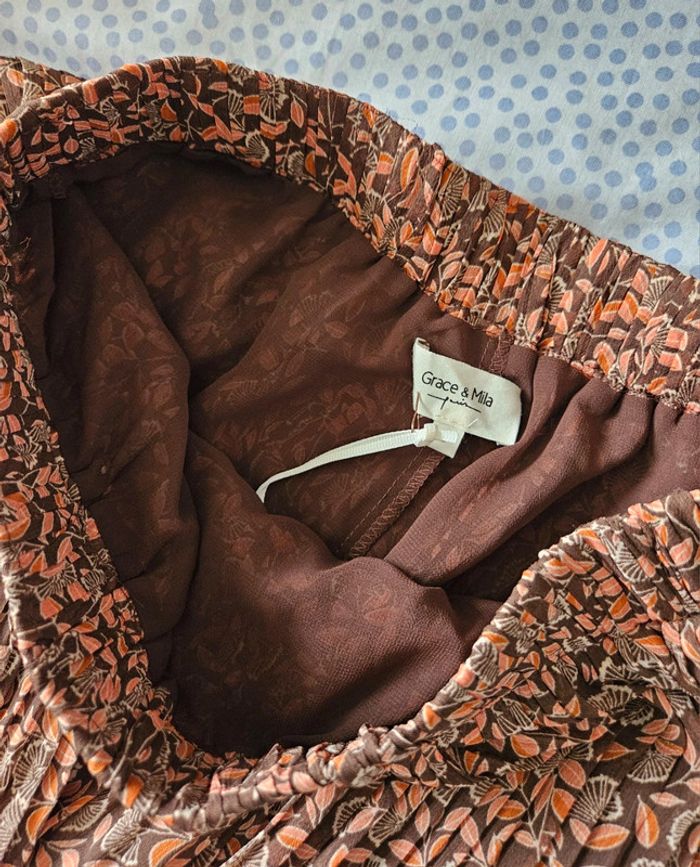 📌Lot 20% de remise dès 5 articles Jupe en voile marron et orange à motif fleurie, taille élastique ➡️Largeur de la taille 35 cm ➡️Longueur 47 cm ➡️100% polyester ▶️modèle Délice ⭐Neuve ✈Envoi rapide des colis 💗 Abonnez vous à mon profil, nombreux articles ajoutés régulièrement ! #laetitresors_jupe36 #jupe #grace #mila #marron #orange #fleur #fleurie #neuve #taille #elastique #laetitresors #doublure #doublé #fluide #evasé #lègère