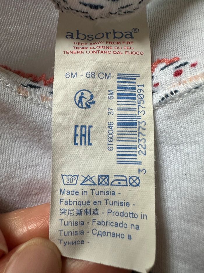 Lot de 5 bodys Absorba à manches longues. Motifs baleines et abeilles. 100% coton. Très bon état. Envoi rapide et soigné.