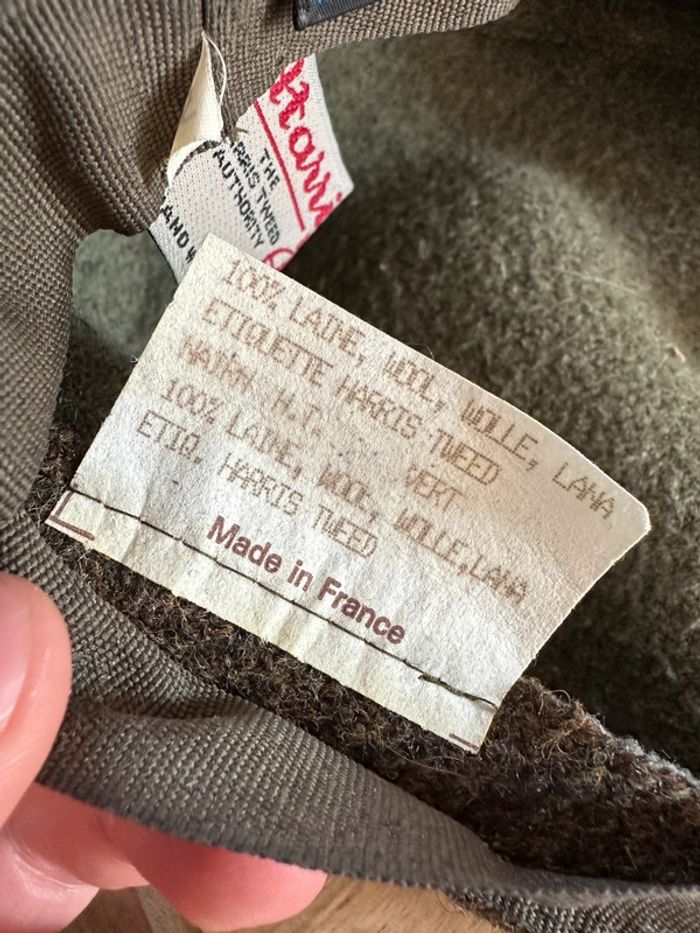 Vintage béret Ecosse Harris Tweed 100% laine made in France M 57 vert - photo numéro 6