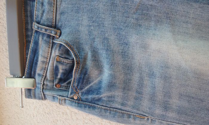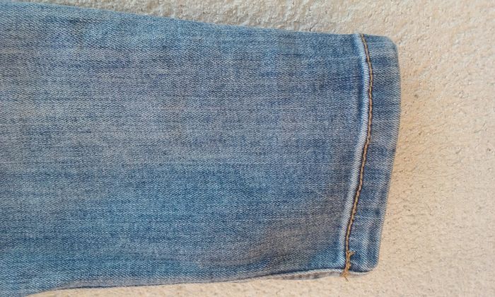 Pantalon Denim aspect délavé, composé d'élasthanne il convient à un 36 et à un 38.