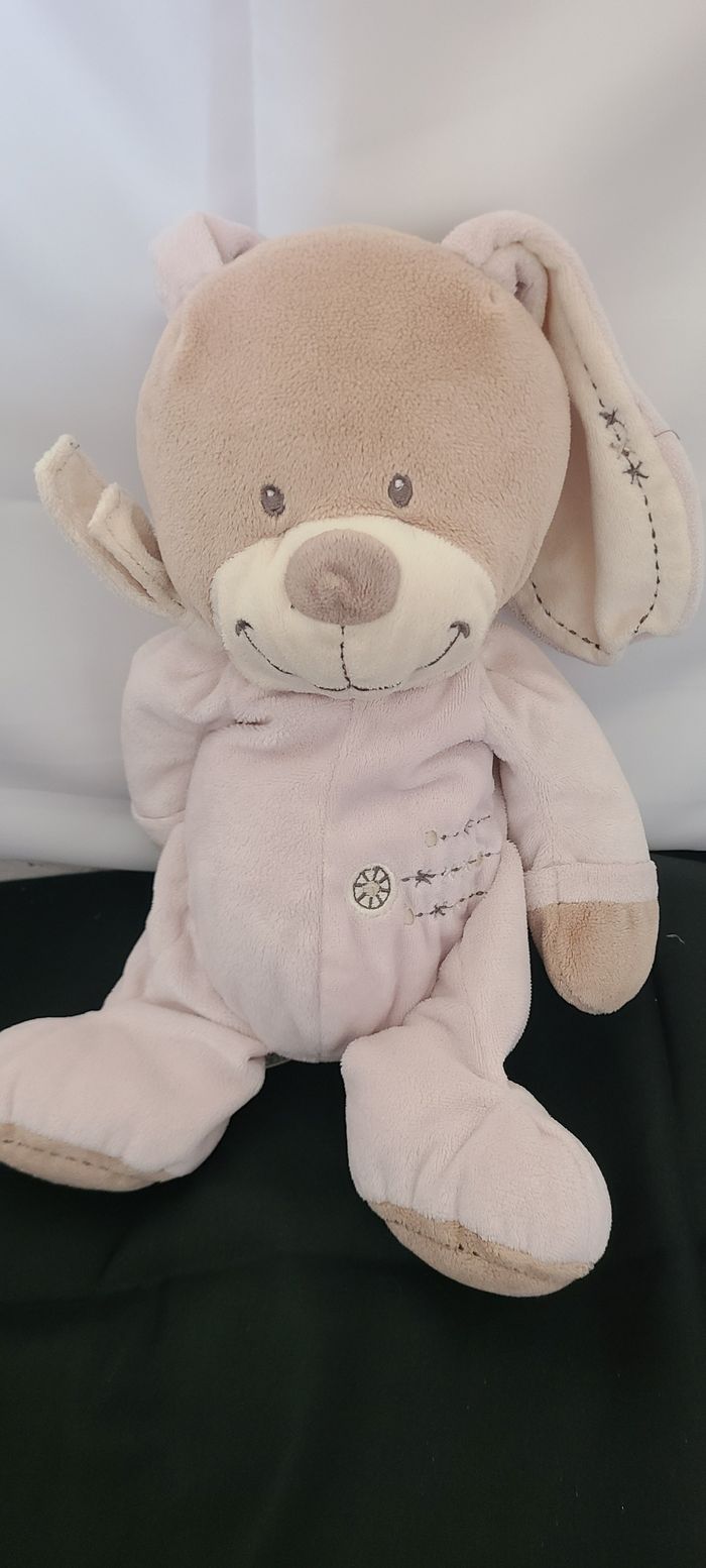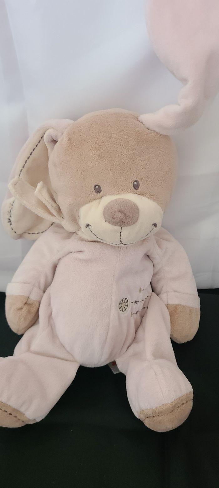 doudou peluche lapin beige marron rose écharpe croix NICOTOY 96