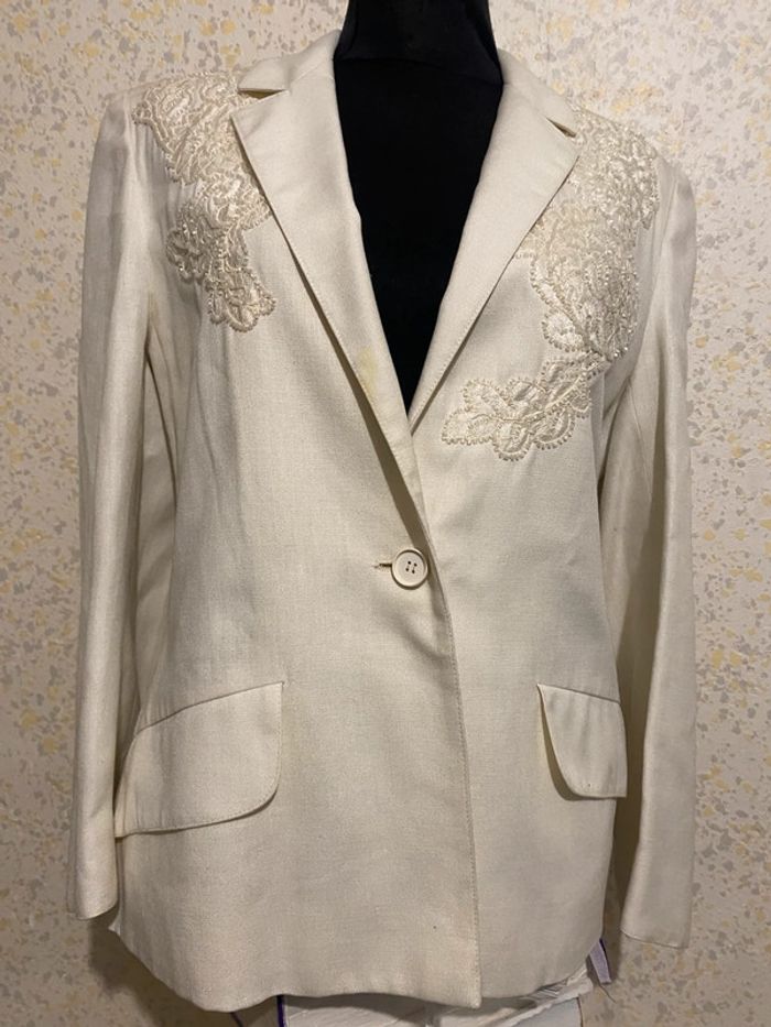 Blazer vintage jean louis scherrer  blanc  perles 42 - photo numéro 2