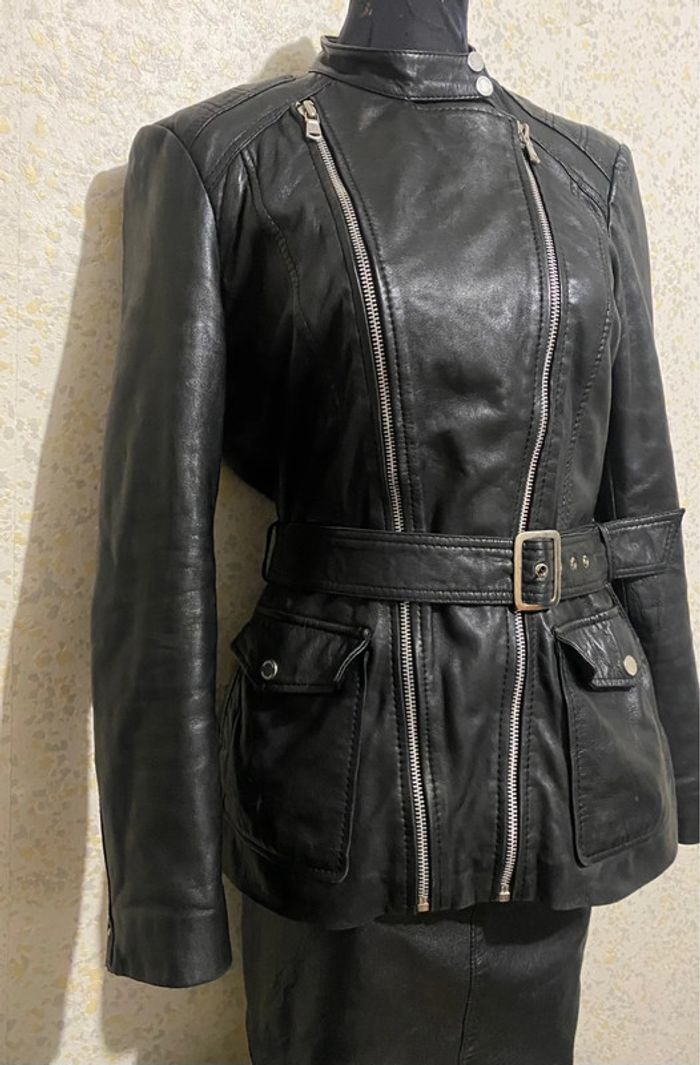 Magnifique veste vintage red skinn ,double zip ,ceinture,poches ,taille 40, longueur 68 cm,carrure 40 cm,aisselles 50 cm,taille 40 cm