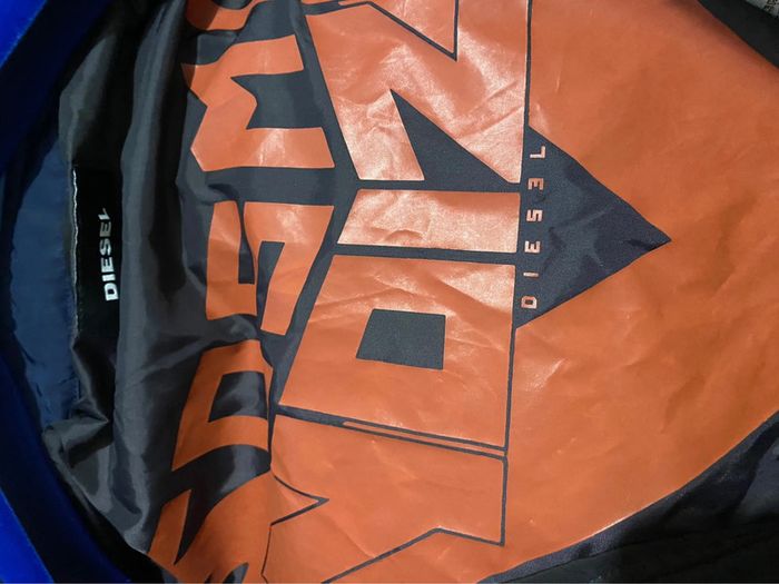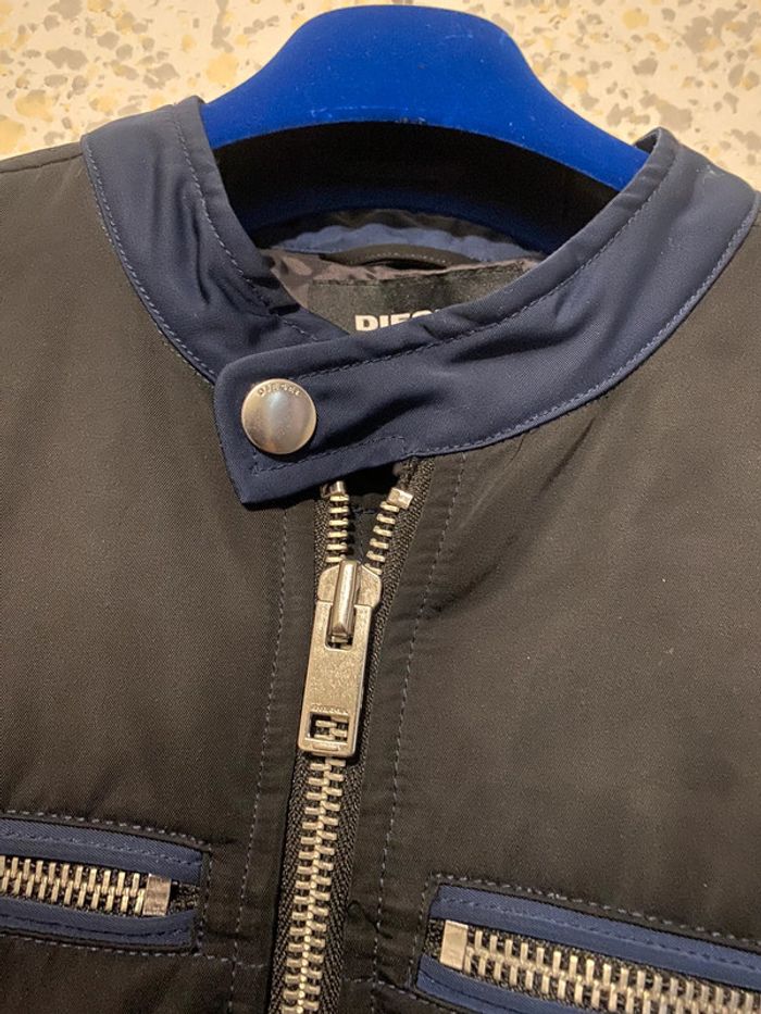 Doudoune diesel ,noir , avec du bleu ,zip , taille M,doublé orange