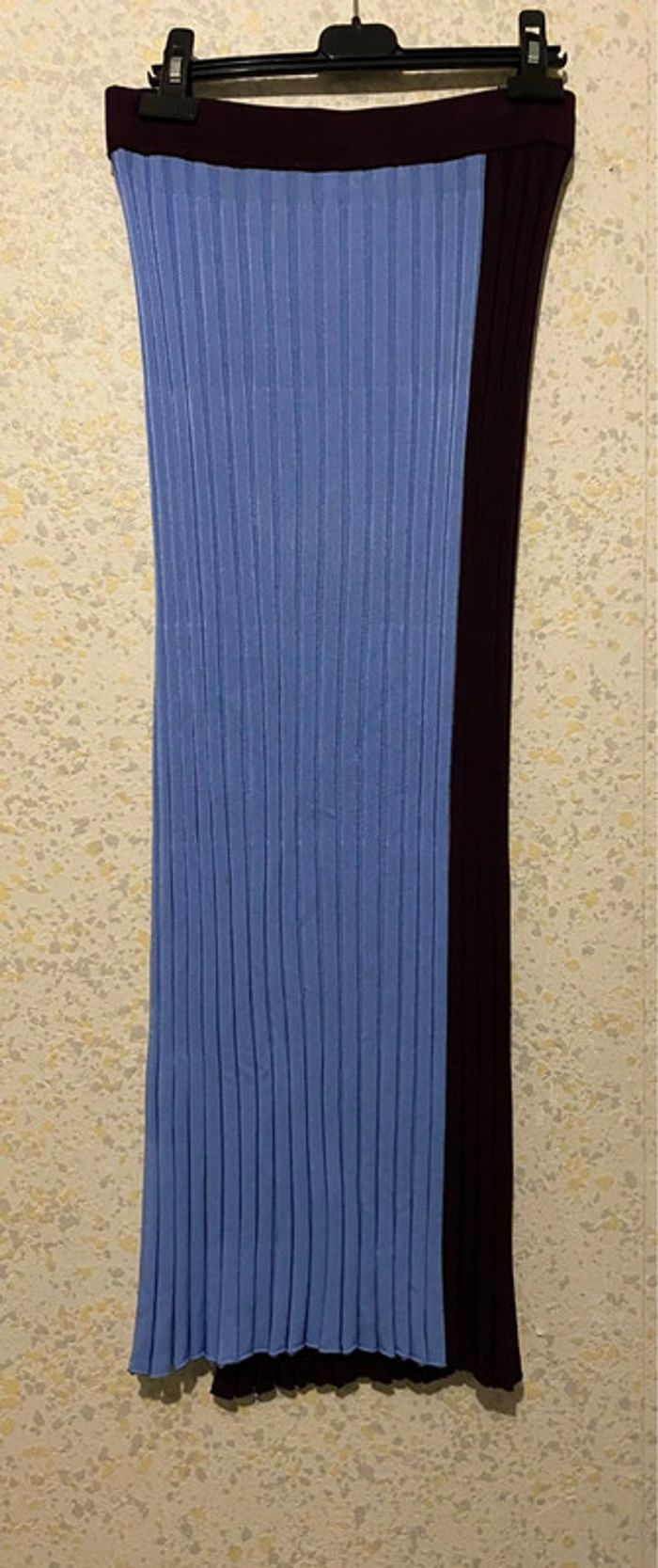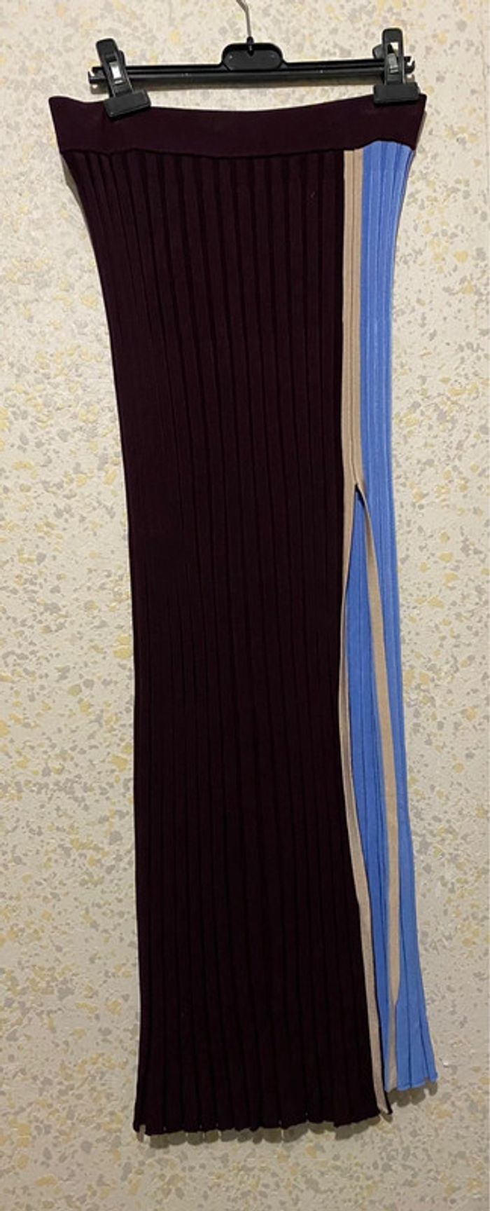 Magnifique ensemble zara. Compose d’un haut stretch,et d’une jupe moulante plissé, fendu,bicolore bleu marron,taille s