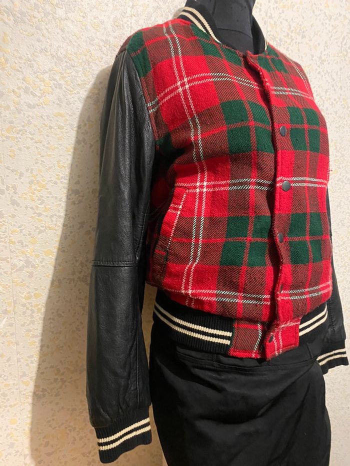 Teddy vintage cuir agneau tartan s - photo numéro 5