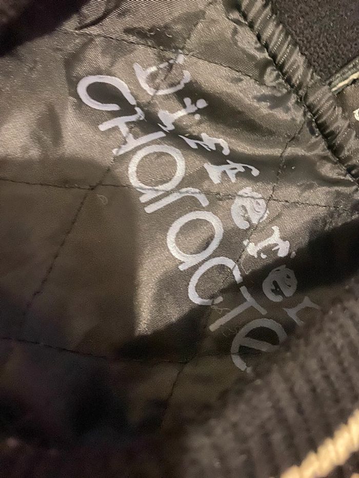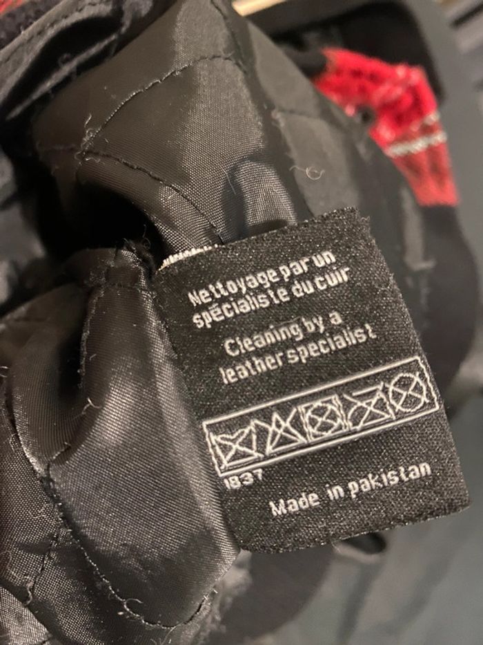 Super teddy. Vintage marque différent character,manches cuir véritable le reste motif tartan épais doublé,pression. Taille s , longueur 60 cm,carrure 42 cm,aisselles 46 cm
