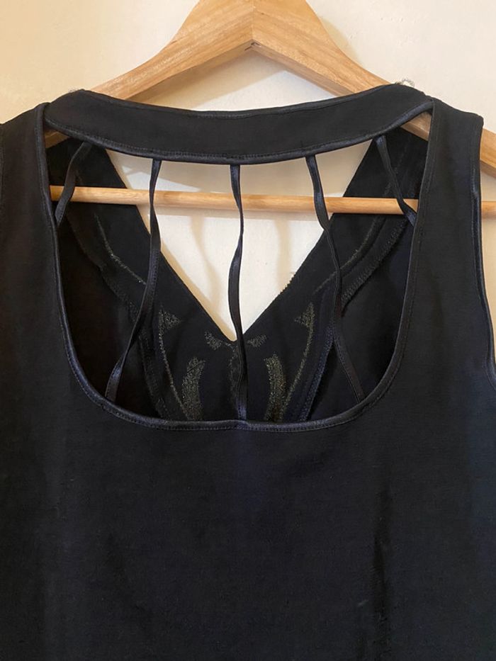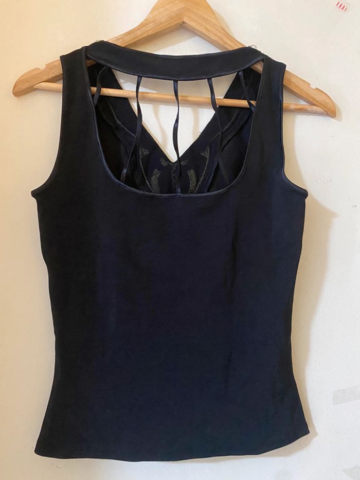 Superbe top stretch feelgoog paris,lanière dos encolure perles et sequins, liseré doré,taille notée s ou M ,extensible