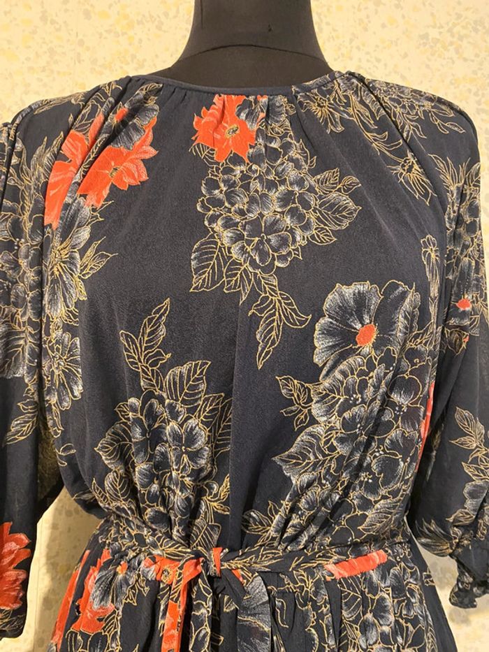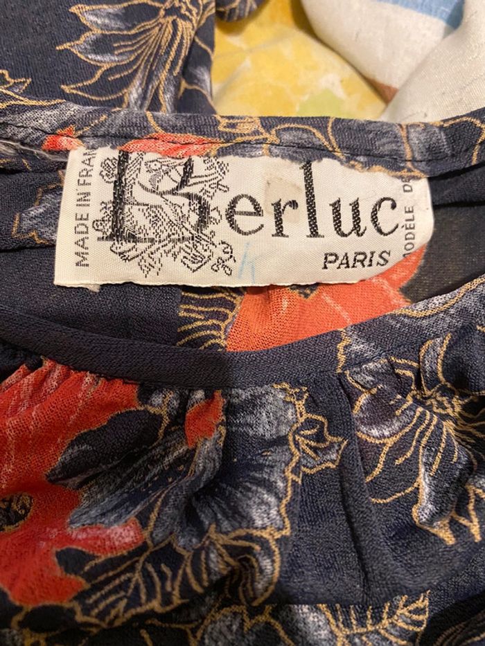 Robe vintage Berlic, jupe double, epaules dénudée, manches smocks, ceinture, taille 34, longueur 110 cm, taille 33 cm