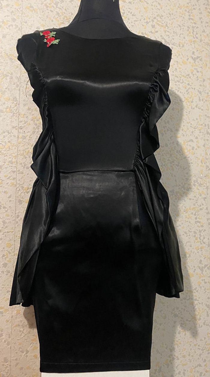 Magnifique robe vintage satinée Deborah barwick london , brodé floral,volant,taille 34, longueur 78 cm,taille 34 cm,aisselles 40 cm,coton et polyester