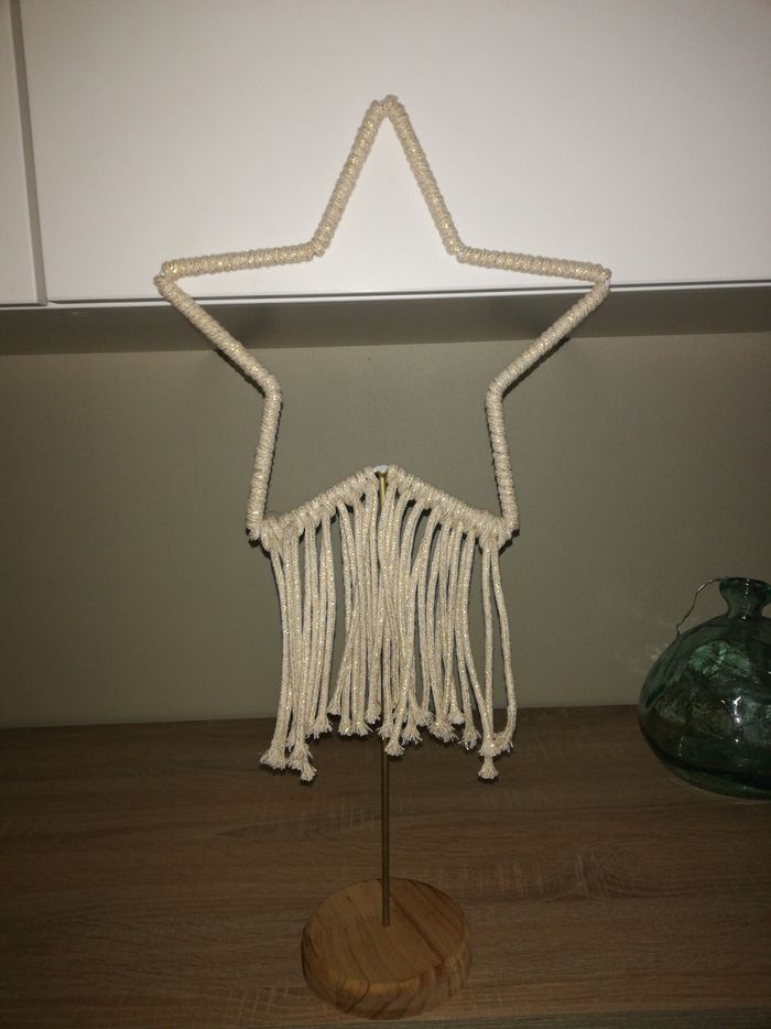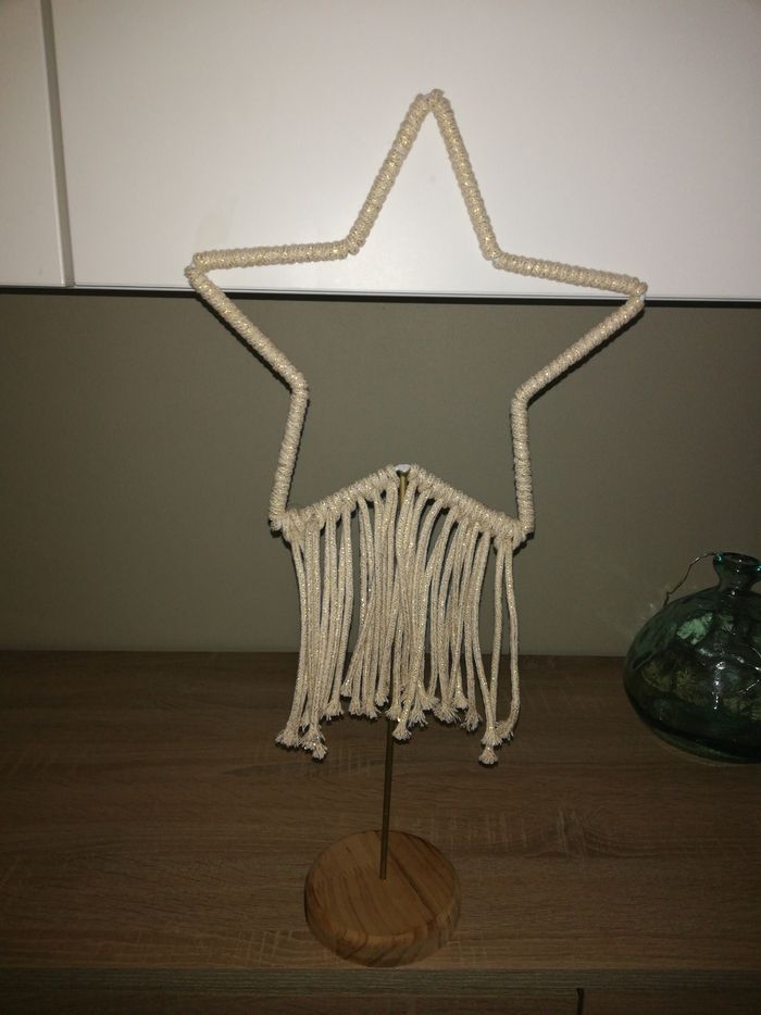 Decoration étoile macramé sur support en bois - photo numéro 1