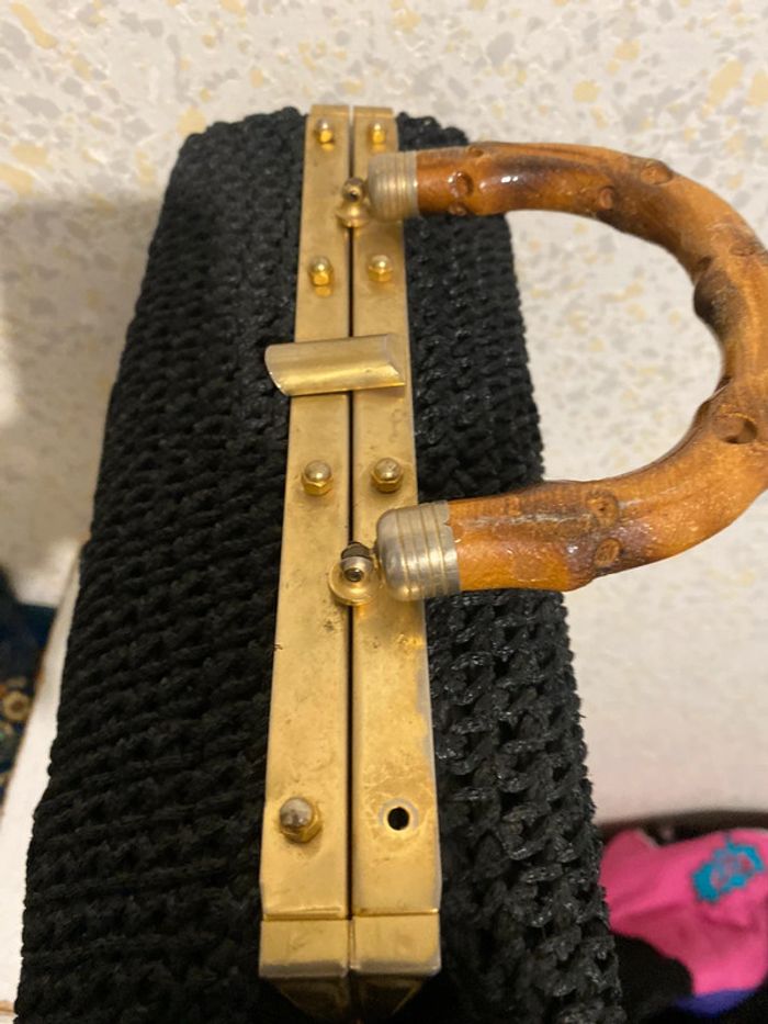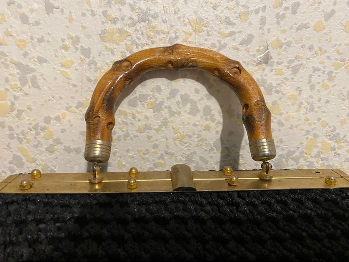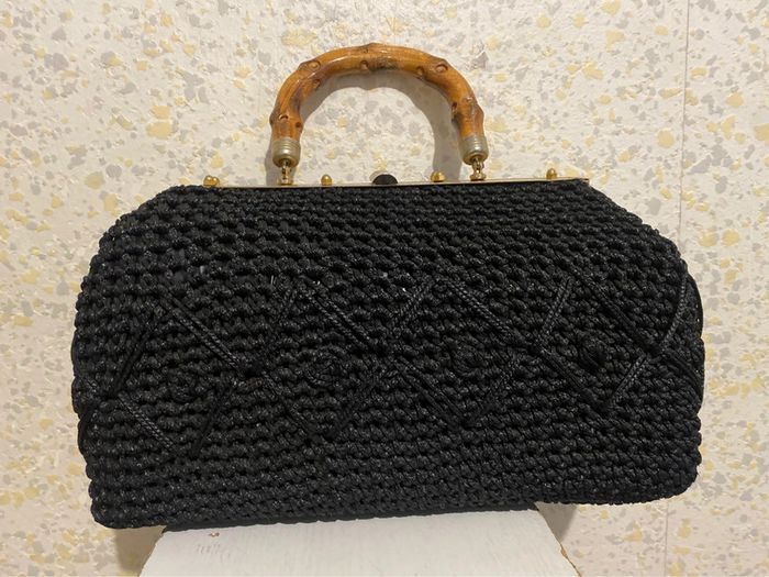 Sac vintage raphia macramé  anse bois - photo numéro 1