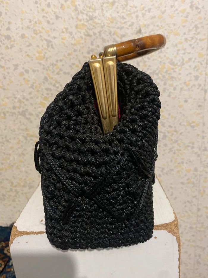 Sac vintage raphia macramé  anse bois - photo numéro 5