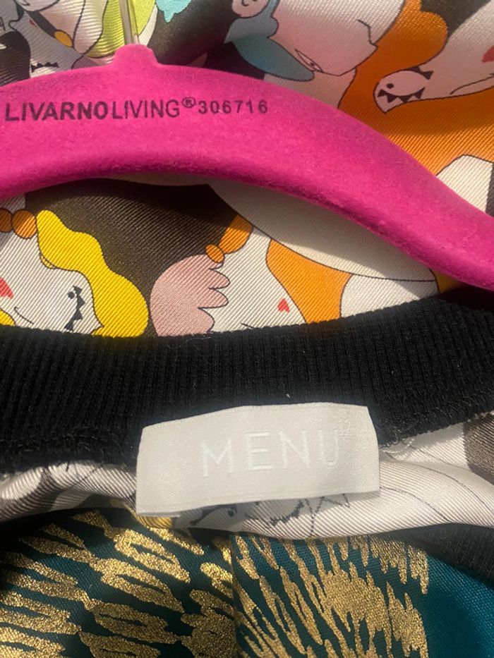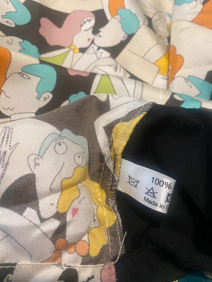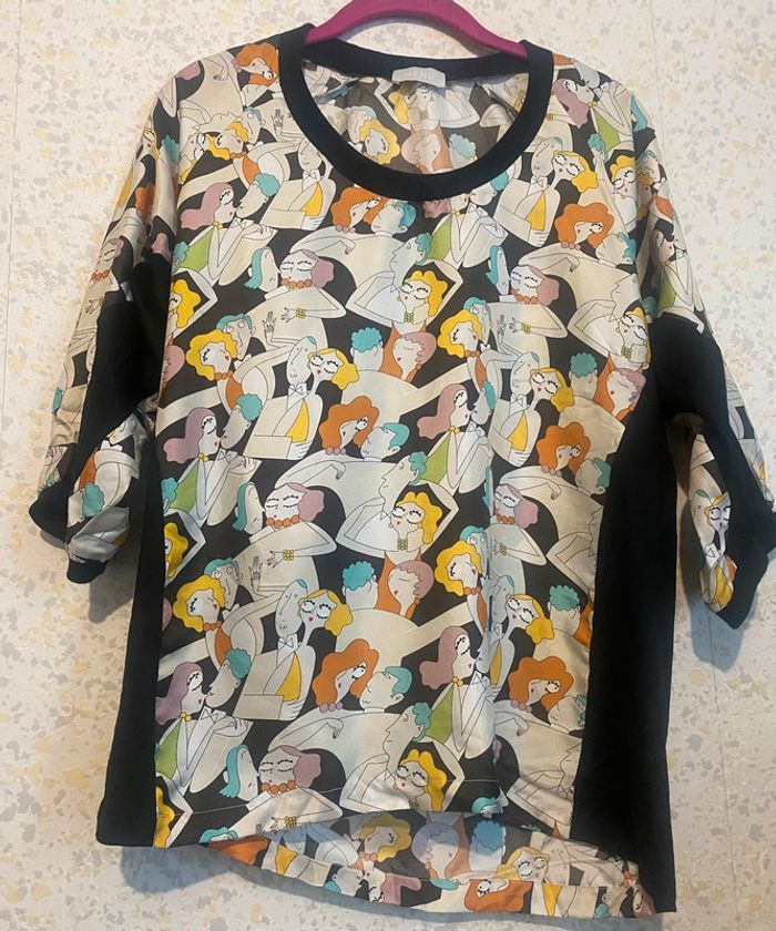 Magnifique blouse soie marque menu. Incroyable motif couple stylisé,taille 40
