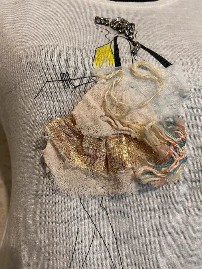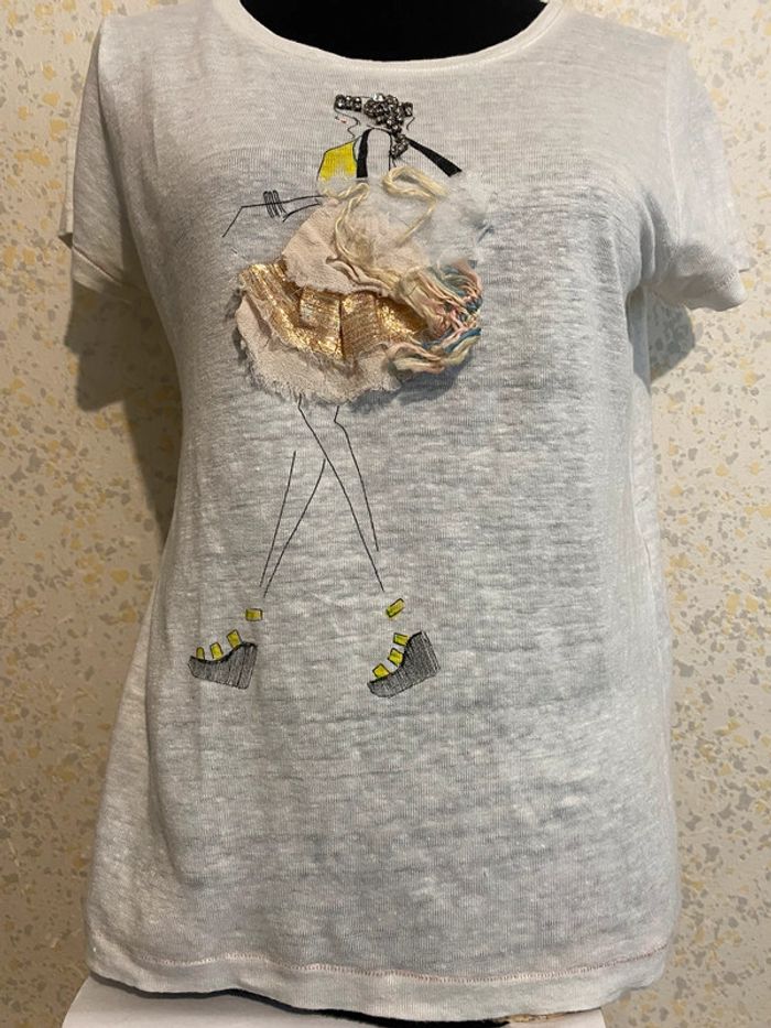 Magnifique tee shirt maje lin ,magnifique motif avec pierre strass ,taille 1