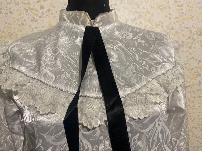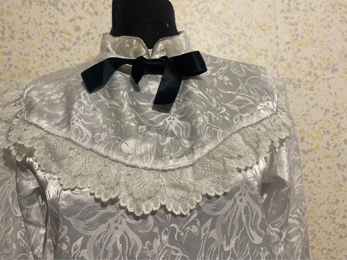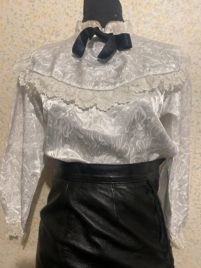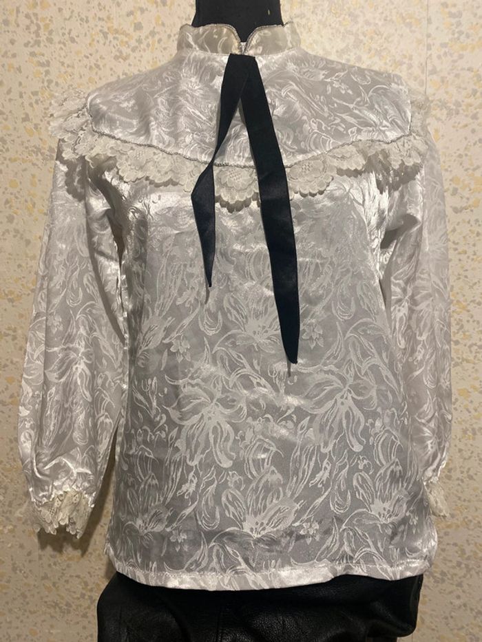 Blouse vintage blanche jacquard dentelle lavalliere 36 - photo numéro 2