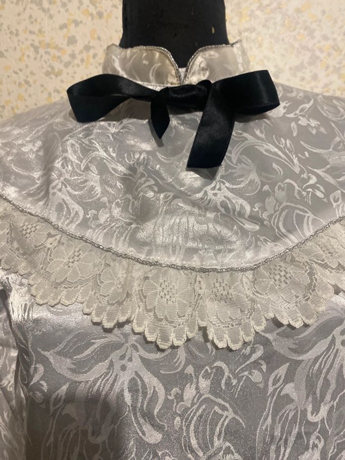 Magnifique blouse vintage jacquard dentelle,lavalliere,taille 36