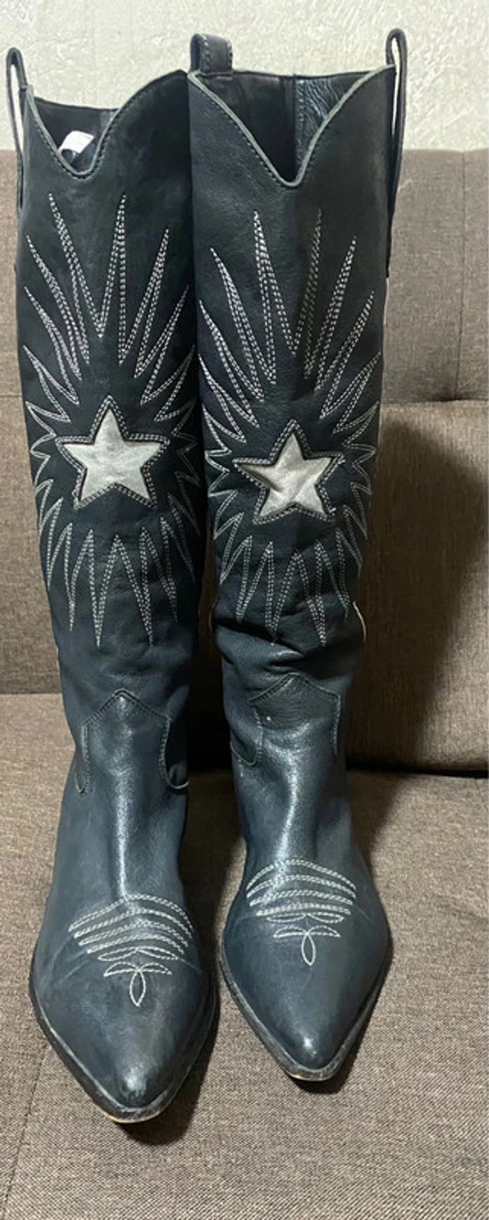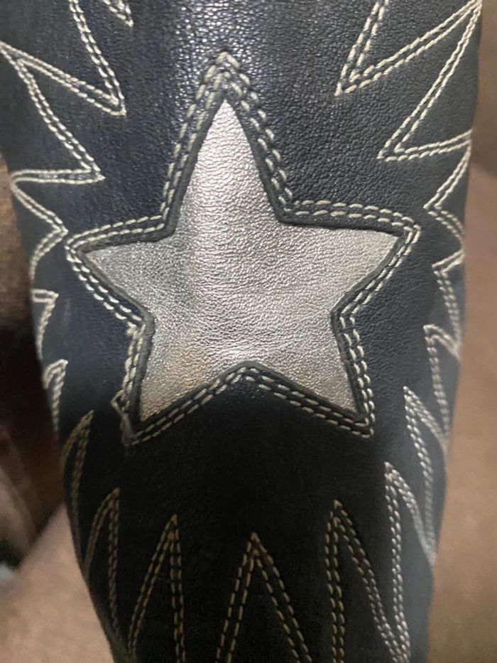 Magnifique santiag vintage marine , brodé blanche et etoile argenté,taille 39, parfait état