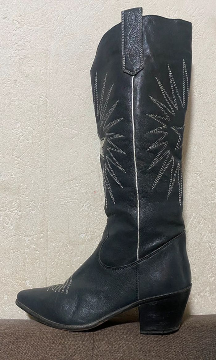 Santiags vintage marine cuir brodé 39 - photo numéro 4