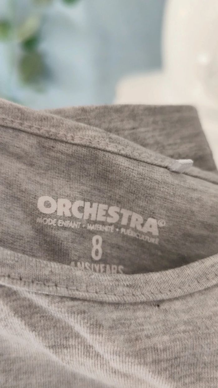 Pull fin gris, écriture multicolore Taille 8 ans (128cm), orchestra Très bon état Matière : 96% coton, 4% Elasthanne #pull #fin #gris #écriture #multicolor #8ans #orchestrafille #coton #tresbonetat #vickaria57_8ans